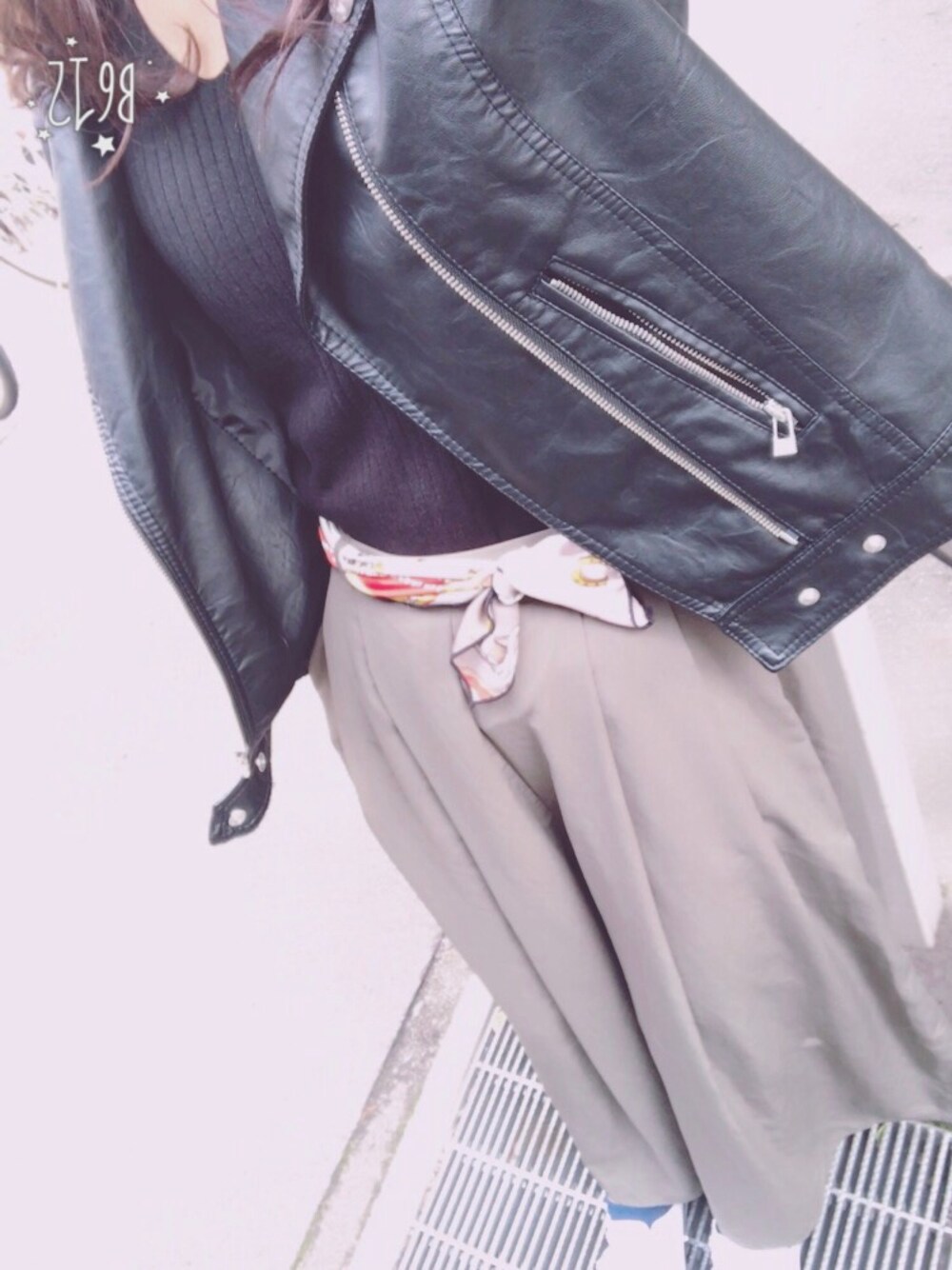 今日はいつもヘアアレンジで頭に巻いてるストールを腰に!! ベルトです😘 昨日買った黒セーターもお気に入りです❤️