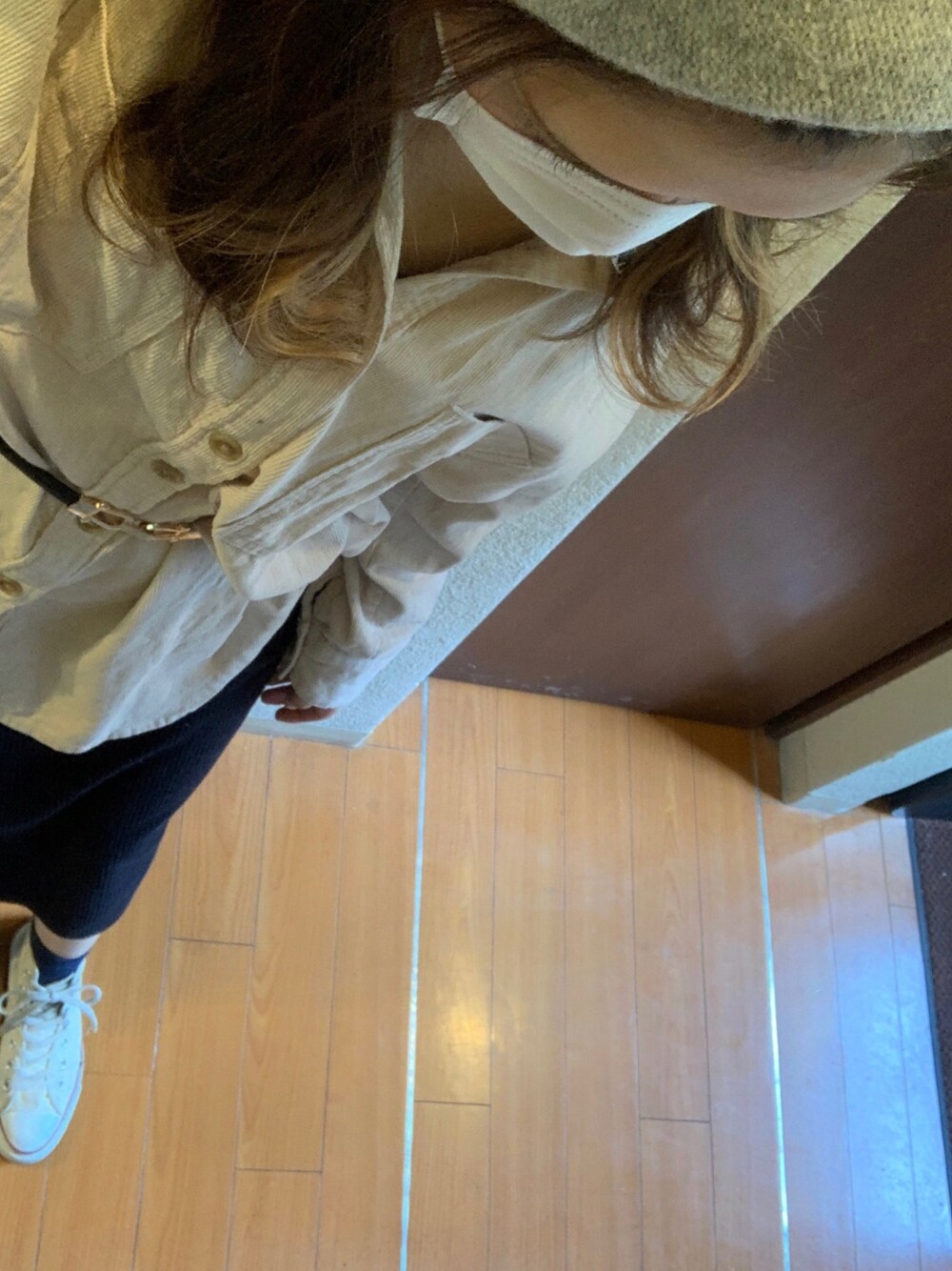 コーデュロイシャツに ベレー帽に 春らしくconverse❤️ こんな中やけどしっかり仕事😭 健康に気をつけましょう。。 頑張ろう、日本