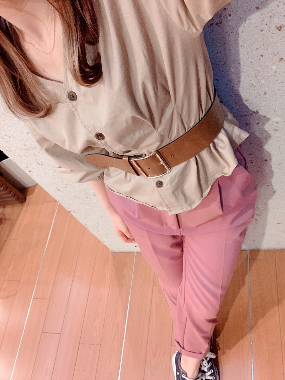 今日も今日とてベルト足長効果笑笑 このシャツは去年の秋に買ったやつ🌼 なんでも使うな、ほんま笑笑 このシャツのいいところ、 デコルテ綺麗に見える、 生地涼しい、 ウエスト引き締められてるから綺麗に見える🧡 ダメなとこ、 腕のゴムがキツいからキューンなって 痛い😖 オシャレはがまん笑笑 スラックスパンツって合わせる靴によって見え方変わってくるからいいよね❣️ エナメル生地の靴でも良かったけど 今日はぬけ感出したくてスニーカー👟