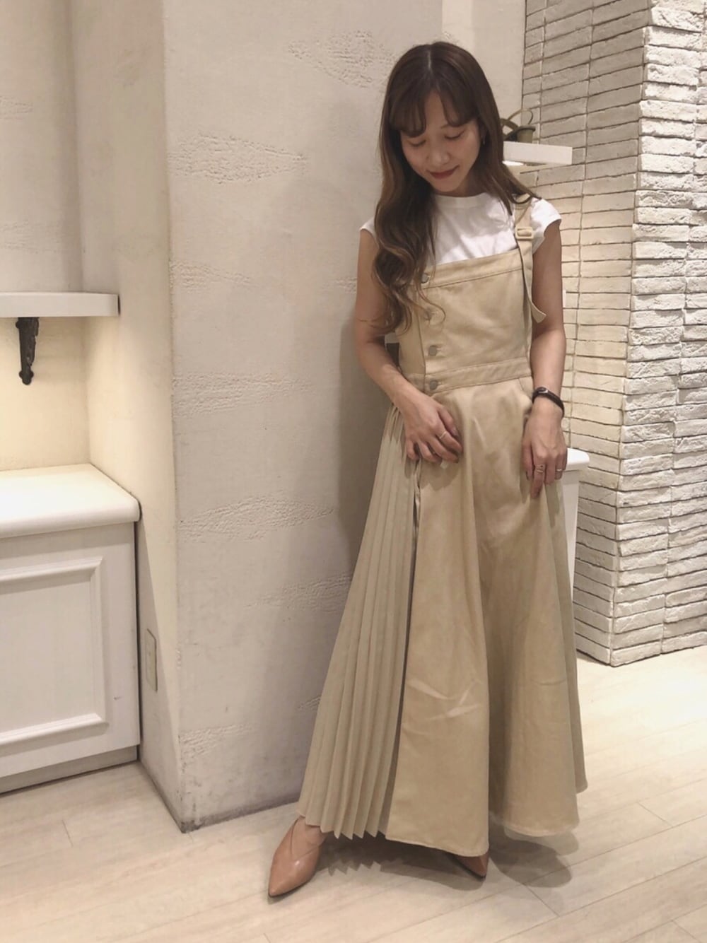 サイドのプリーツと バックデザインが可愛いワンピース。 TOPS次第で長く着まわせます🧡 ミュールはヌーディな色味で 大人っぽく履いていただけます。