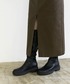 今の時期にぴったりなシャツワンピ。 トレンドのトラックソールブーツで 足元にボリューム感を。