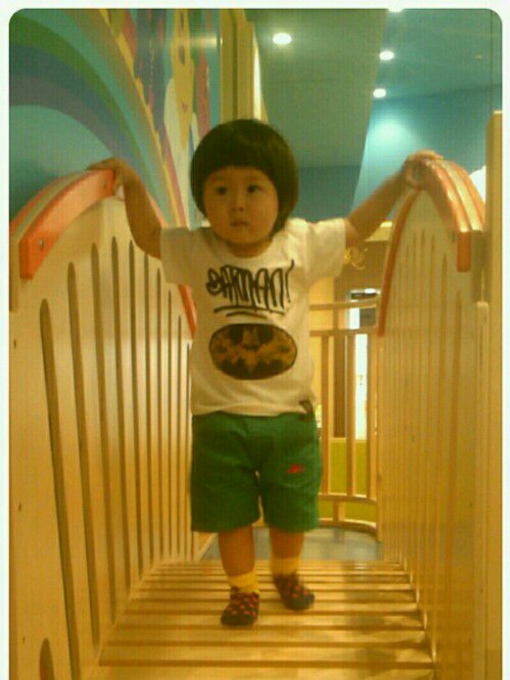 しまむらでパパが選んだバットマンのTシャツ♪ 帰ってから、白いTシャツ持ってなかった事に気付く… 色物柄物ばっかり…!!