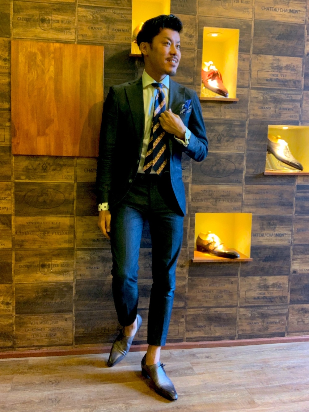 見ていただき、ありがとうございます^ ^ 今日はフラワー柄のネクタイを主役にテーラードデニムのセットアップでネイビーコーデを! やっぱデニムのセットアップって最強だなー♪