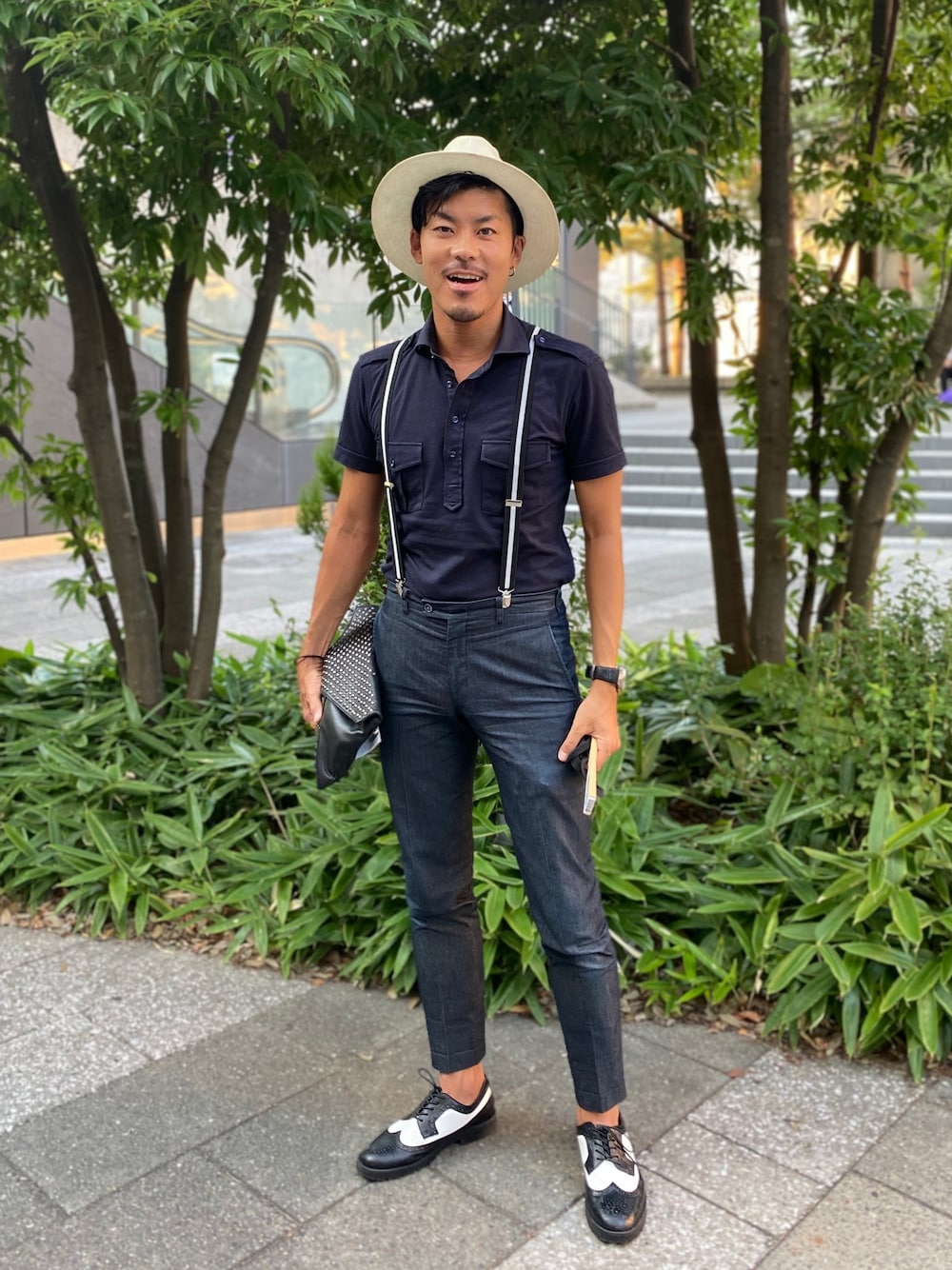 見ていただき、ありがとうございます^ ^ パイロットシャツにサスペンダーを挿してちょっとドレス感を出してみました! そこにハットを合わせて大人っぽさも狙ってます笑い