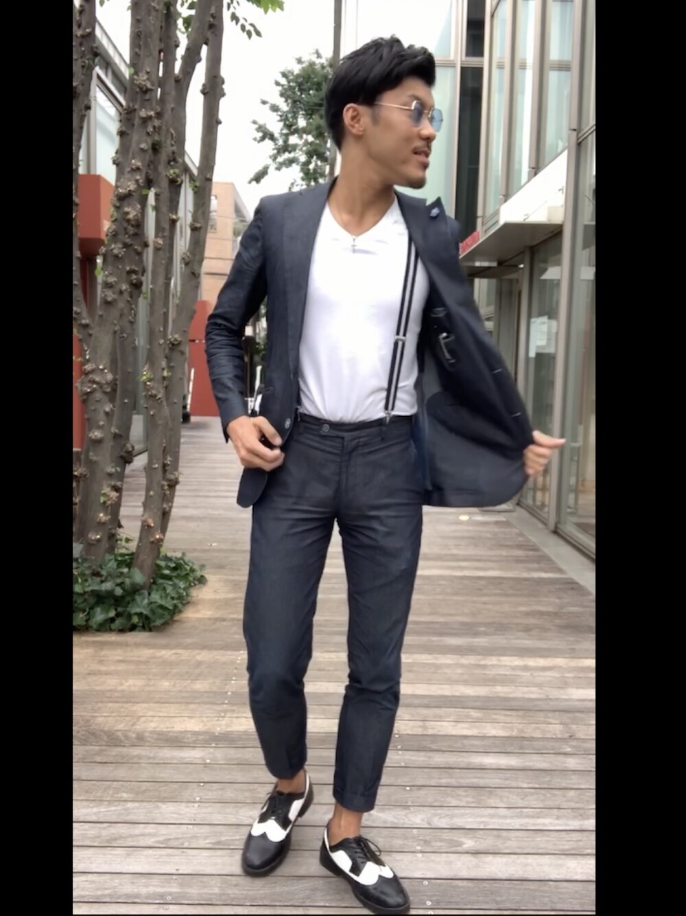 見ていただき、ありがとうございます^ ^ デニムのセットアップコーデにちょっとアクセント加えるために、白Tをタックインしてサスペンダーを差してみました! それに合わせて足元もコンビシューズで、適度な品というかドレス感が加わって今年のお気に入りコーデです!