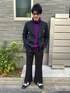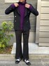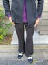 見ていただき、ありがとうございます^ ^ フロントスリット入りフレアパンツコーデ. 普段グレーやベージュになりがちなインナーをあえてパープルで遊びを入れてみました!