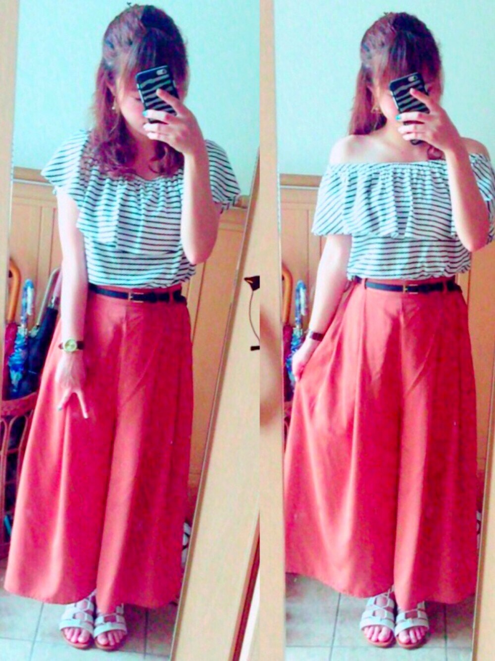 ホワイト系のTシャツ/カットソー、ホワイト系のサンダル、ブラウン系のその他パンツを着用したレディースの夏コーディネートの1枚目の写真