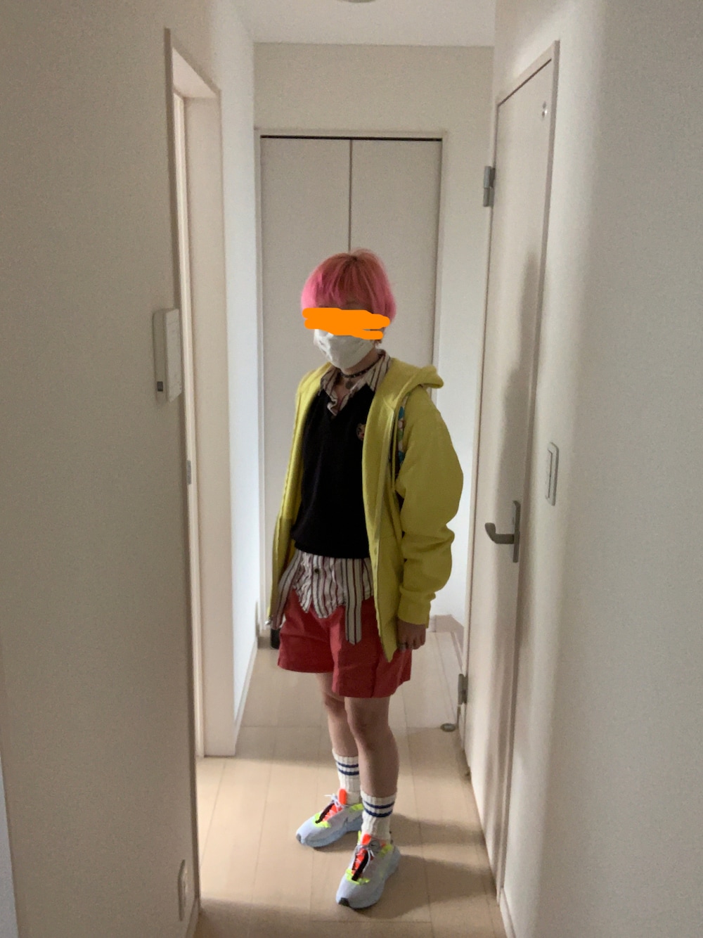 暑くはなかった…なんならちょびっと寒かった❓😅 そんなに外に出てなかったからいいけど😝 スニーカー👟とブーツ👢で迷った。 ショーパンもベージュとピンクで迷った。 髪ピンクだからピンクにした。