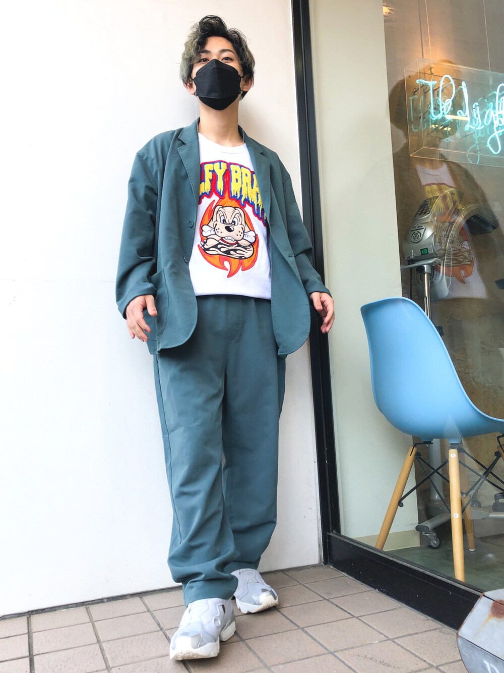 🔥キレイめストリート🔥 Tシャツはガルフィー🐶 ジワジワきてると聞いて 挑戦してみました! キレイめの中にストリートな感じで着れるので バケットハットなどとも 相性が良さそうです!