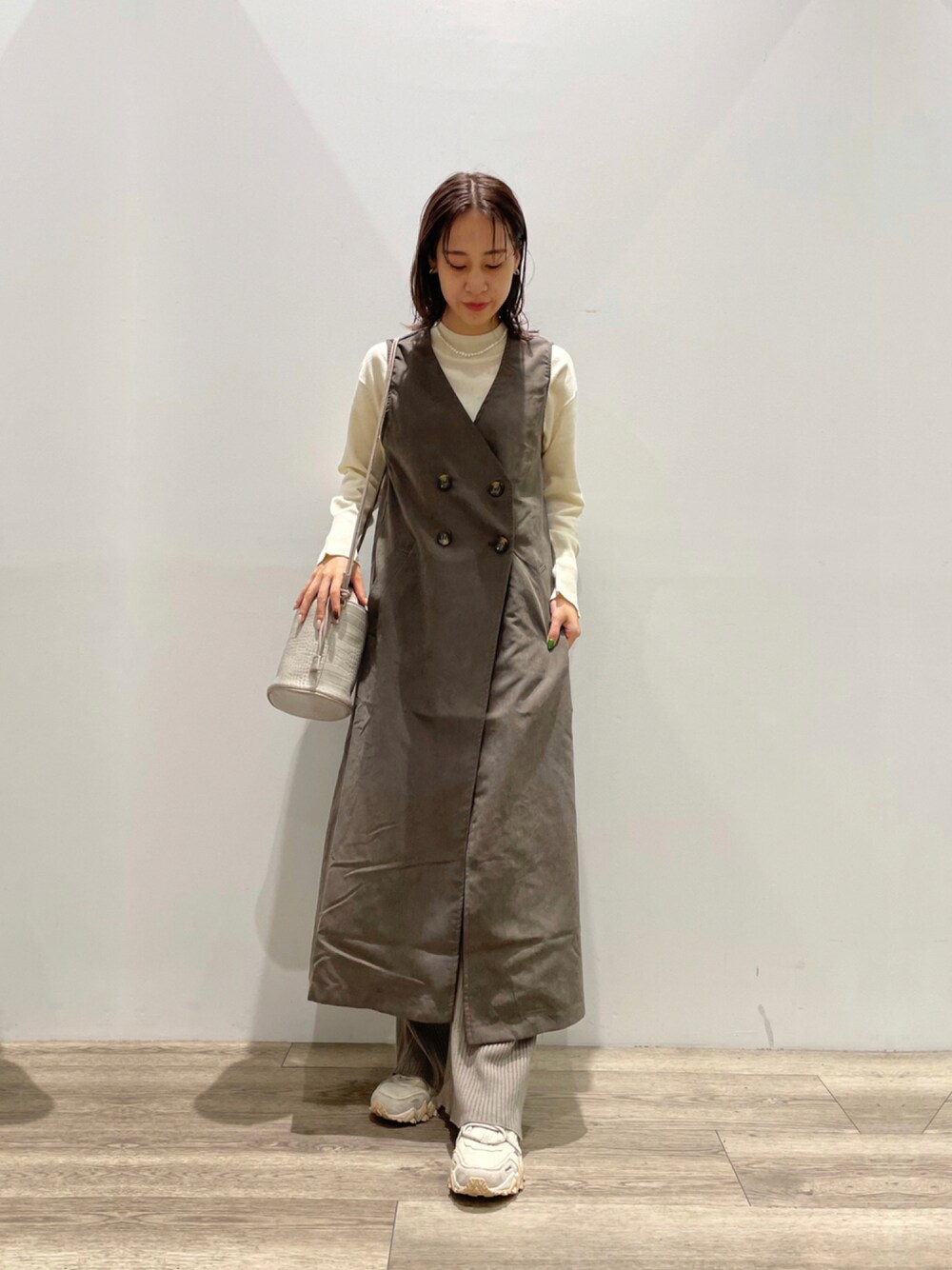 konomi(COLONY 2139 本部)のショルダーバッグ「リサイクルレザータッチ バケツショルダーバッグ」を使ったコーディネート