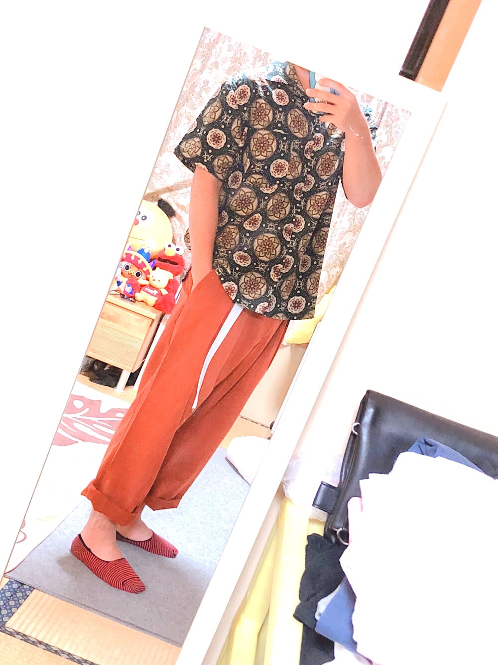 久しぶりに投稿して見ました。 柄物のオープンカラーTシャツは初めて買ってみました。 赤のズボンも合わせるの難しいかもしれないけど、これから挑戦してみます。