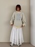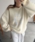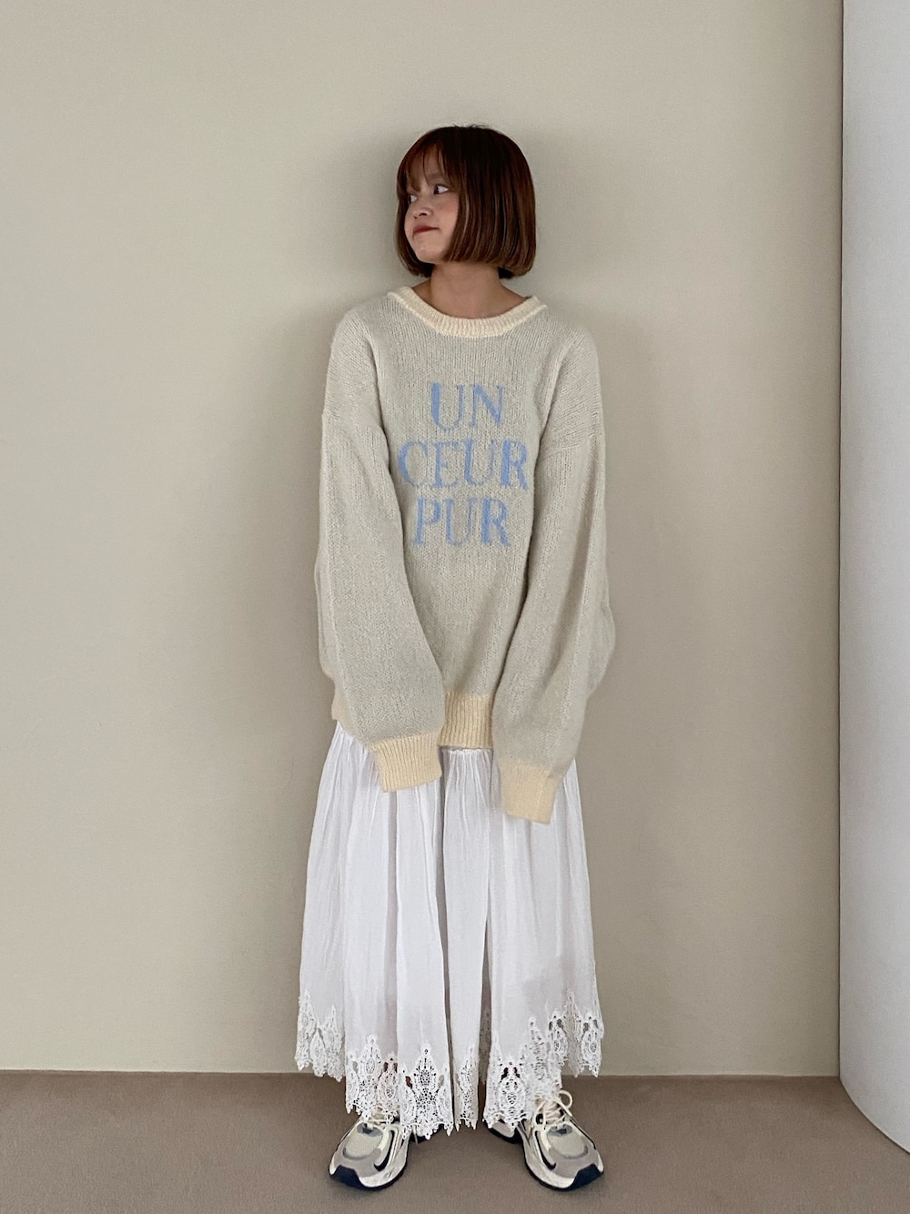 ゆったりのロゴニットにコットンレースのスカートのワントーンコーデ🤍 スニーカーでカジュアル感をプラス⛄️