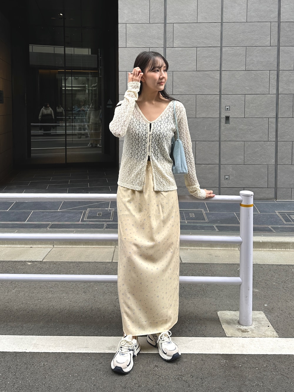 大人っぽいレースカーディガンに 花柄スカートで春先取りコーデ✨