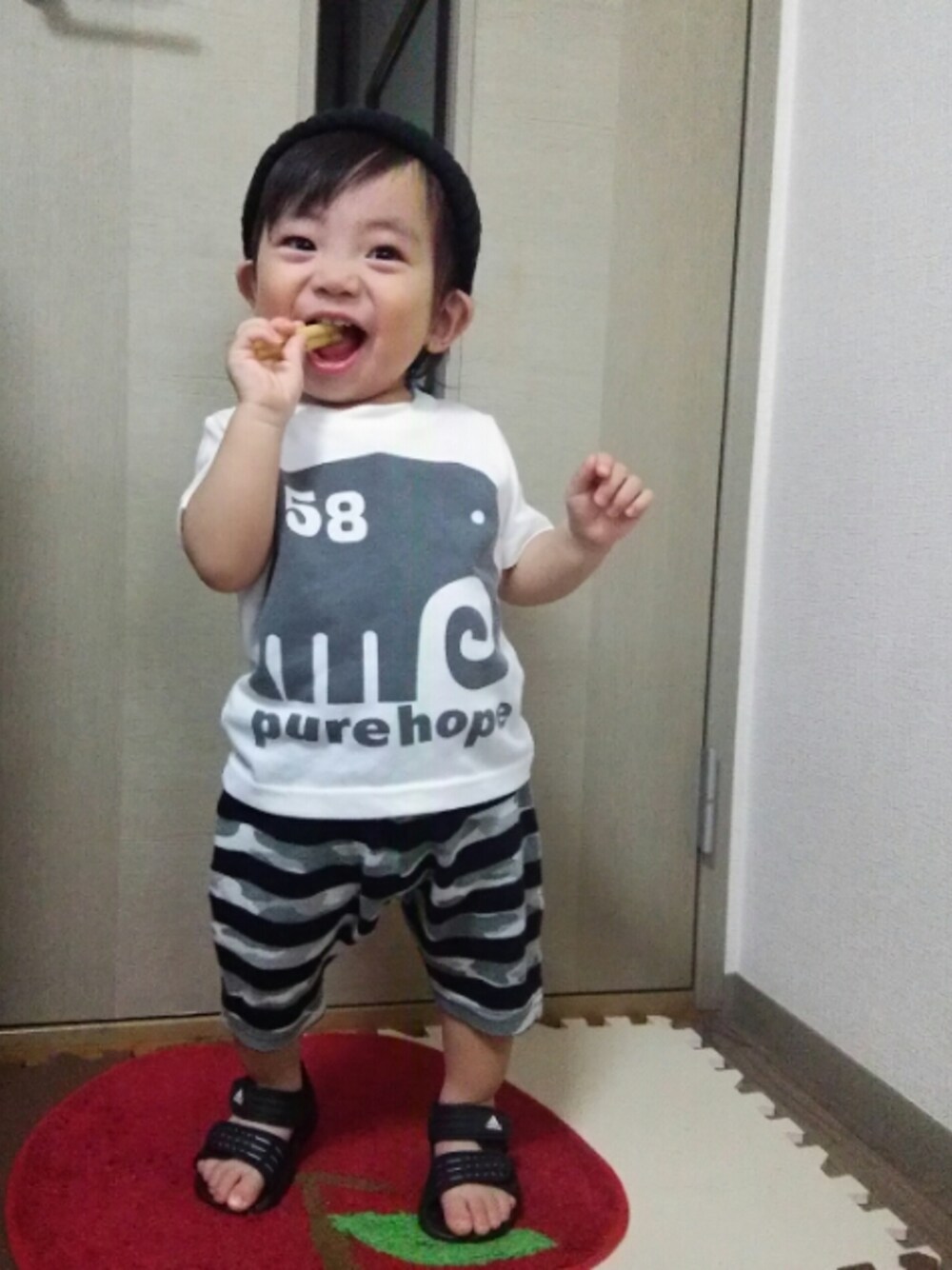 遊びに来て頂きありがとうございます✨✨ ❤、save、コメント、フォローとっても嬉しいです😆💕 ちょっとバタバタしてて、なかなか更新出来ませんでした💦 ❤ばかりで、あまりコメント出来ず申し訳ありません😭 今日のパンツはずっと前から欲しかった物で、先日フリマアプリでやっと入手出来たんです🎵😍 着せると更に可愛い~❤ 愛媛にもマーキーズのショップがあれば良いのになぁ。。 しかし今年の梅雨は雨が多くて嫌になりますね~😖 蒸し暑いし、坊は毎日汗だくです💦 昨日エアコンつけっぱなしで寝ちゃって、父と母は風邪気味……💧バカ過ぎる😂 みなさんも気を付けて下さいね💦