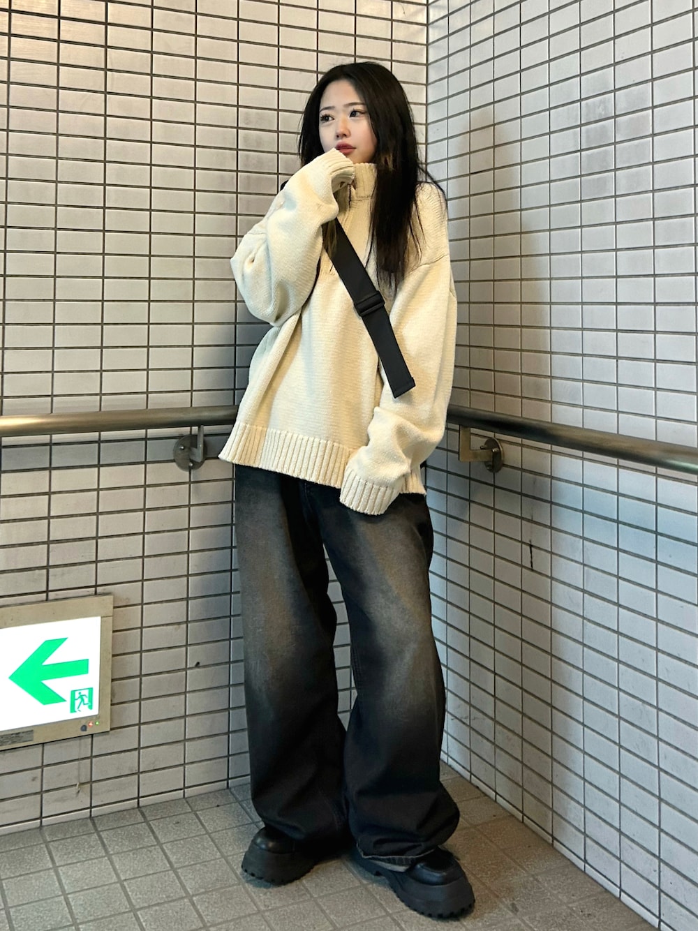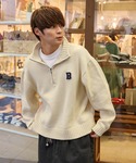 asukaのニット/セーター「【ビッグシルエット】ワンポイントロゴ ハーフジップニット」を使ったコーディネート