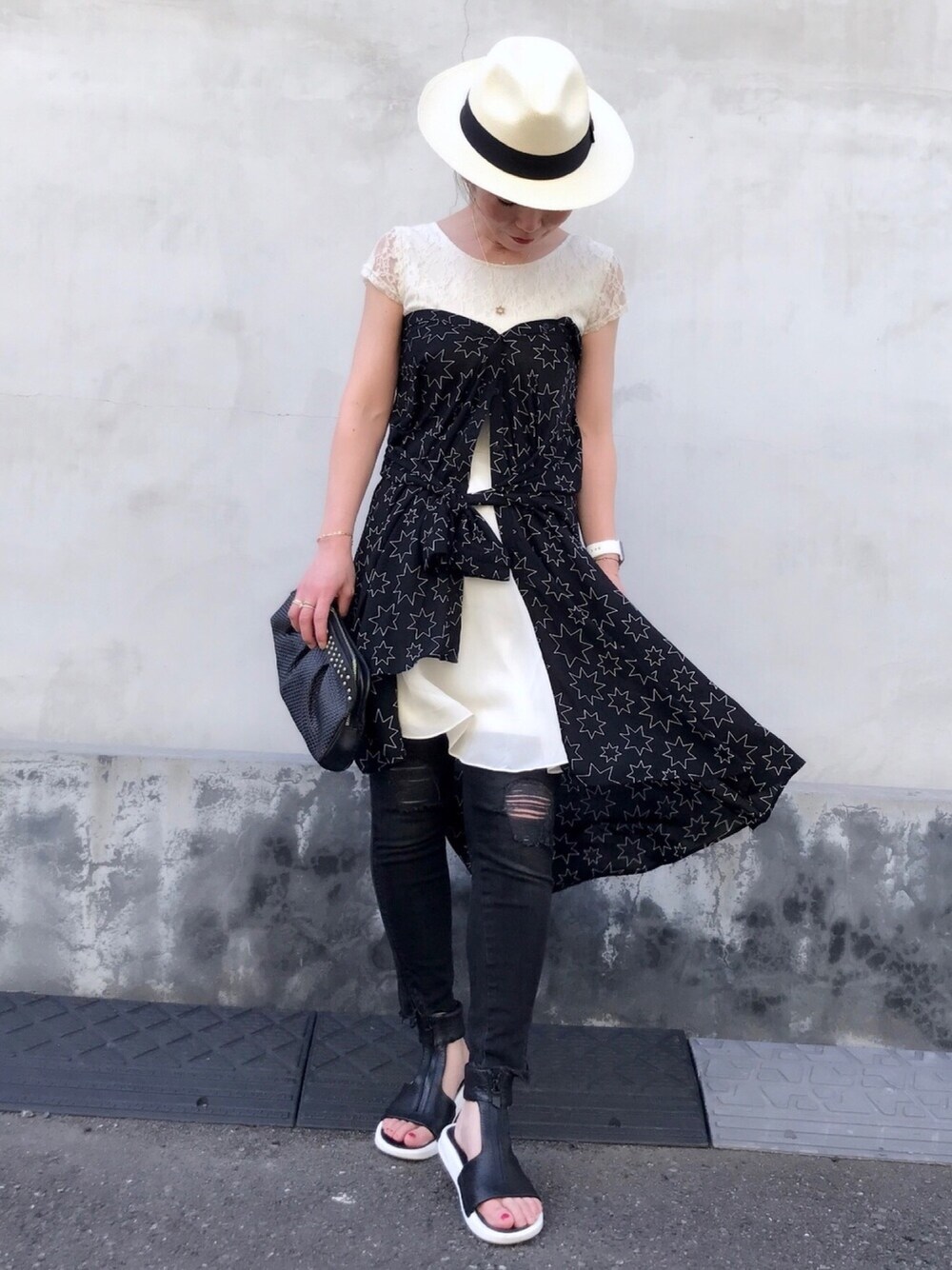acoのシャツワンピース「星柄プリント地ワンピース」を使ったコーディネート