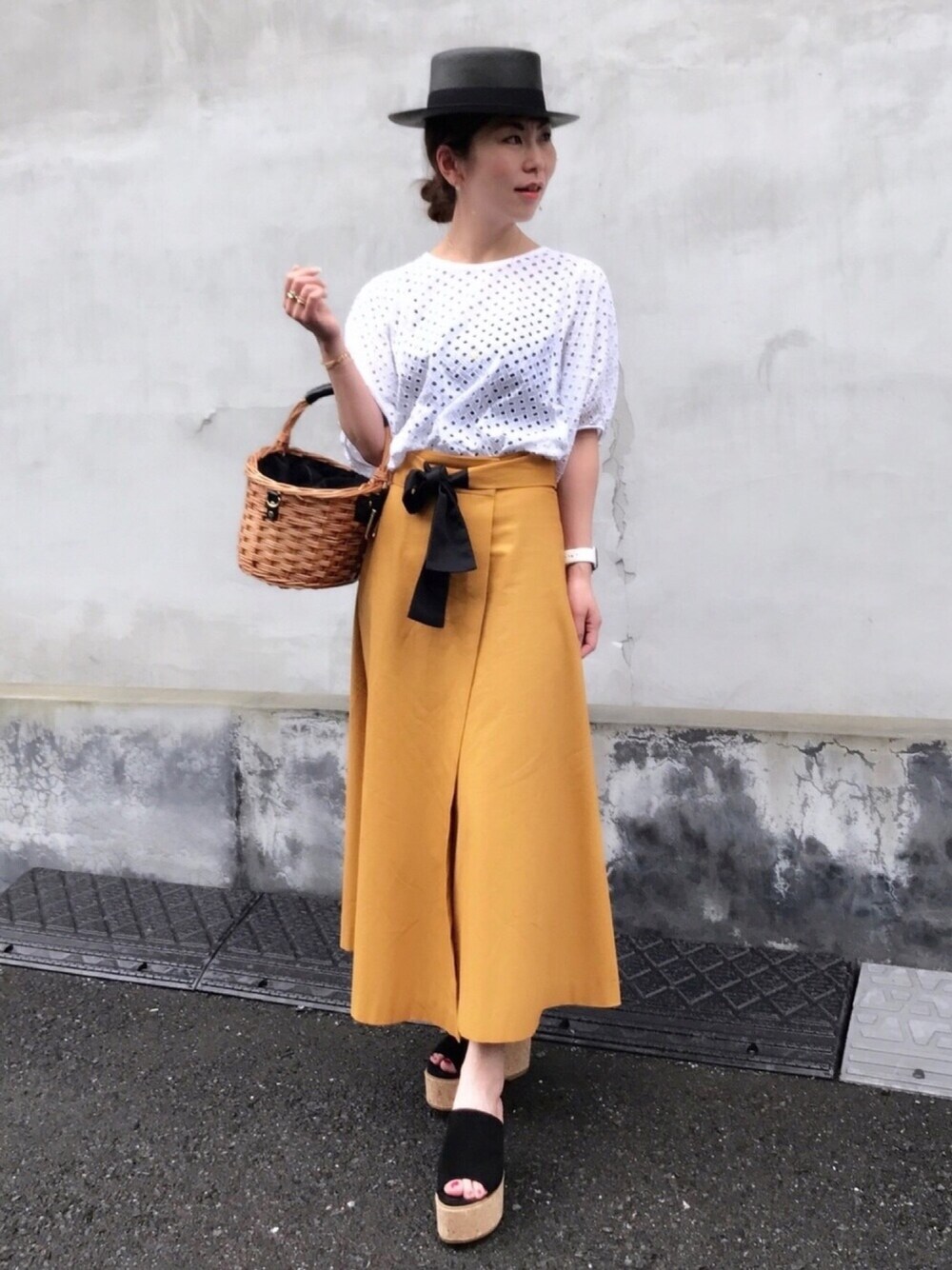おはようございます 一枚着でサマになる白teeにロングスカート🍊 黒のパナマハットは想像通りに合わせやすくて🙆 暑いと重ね着所ではないですね😂 ジュエリーは踊っているみたいなニコちゃんチャームを65センチチェーンに通して、ラインダイヤモンドネックレスと重ね付けしました✨ 見て頂きありがとうございます✨
