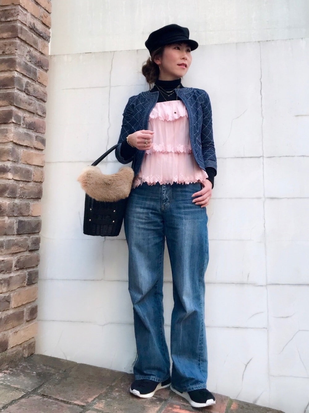 おはようございます✨ ジャストサイズのノーカラーデニムジャケットにワイドデニム デニデニフェス参加します✨ 宜しくお願いします ステッチがポイントのデニムジャケット ユニクロのリブタートルに ピンクのキャミ着てみました 最近電車の中が暑いです💦 ジュエリーは、Coming Soonのスターピアスに 六角形のダイヤモンドピアスと8本爪の一粒ダイヤモンドピアスを合わせました✨ 見て頂きありがとうございます✨