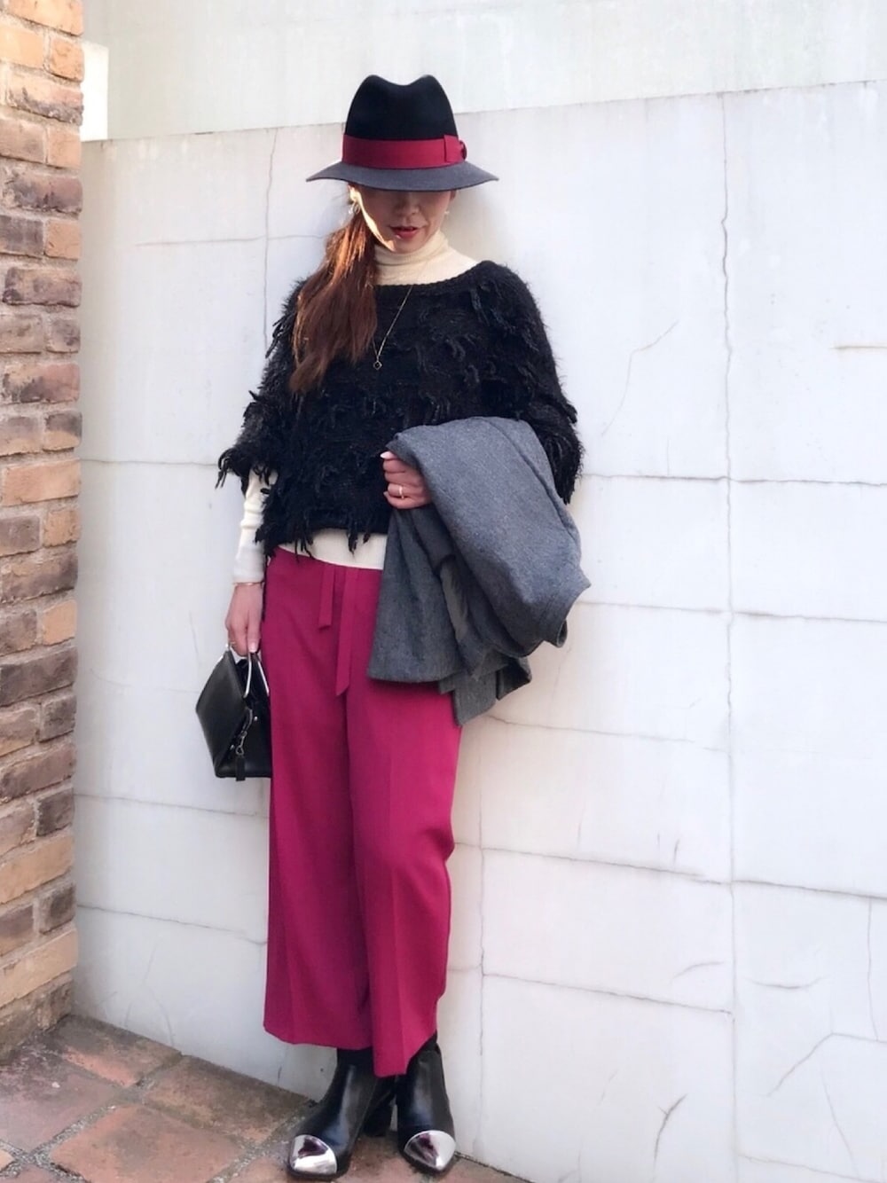 おはようございます✨ お気に入りのハットに合わせてピンクのパンツ 黒×グレーのミックスニットにタートルニット アウターはグレーのポンチョ←着た所写真撮らず… ジュエリーは、新作のキュービックジルコニアアメリカンピアスに つや消し仕上げのシンプル一粒ダイヤモンドピアスを合わせました✨ 見て頂きありがとうございます✨