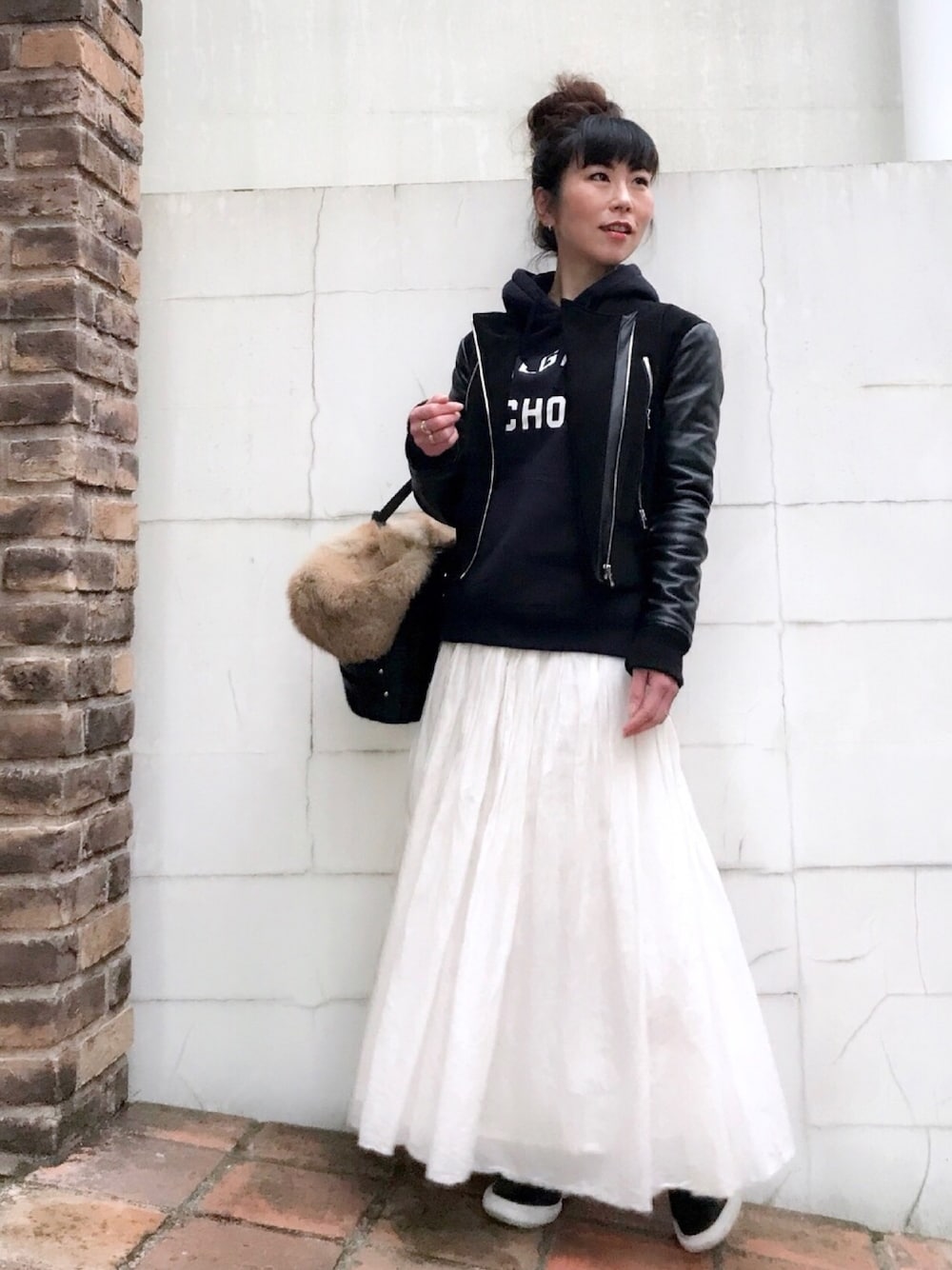 おはようございます✨ ロゴパーカーにブルゾン 寒さが和らいで暖かい昨日、白スカート履きました このまま暖かくなってほしいですが 来週また極寒とか… ジュエリーは、オンオフ問わずに付けられるシンプルフープピアスに 3ミリサイズのビッツピアスを合わせました✨ 見て頂きありがとうございます✨