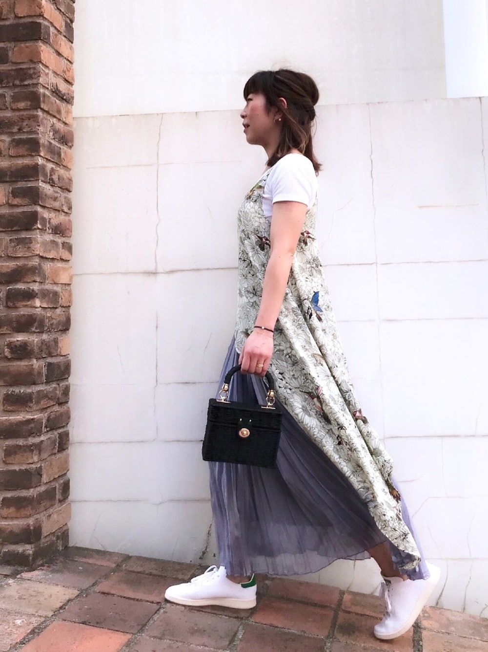 おはようございます✨ 超アシンメトリーの柄トップスに ラベンダー色のシフォンプリーツスカート インポートの鳥柄プリントが好み さまざまな色使いで 色合わせも楽しめそうなトップス 長い方は丈が足首あたりまであるので パンツでもいつもとイメージ変えられそうかなと1人妄想 中は去年のユニクロリブバレエネックteeです 26度?27度? 4月頭とは思えない暖かさ デニムジャケット持って行きましたがほぼ着ず 今日はまた肌寒い朝で半袖着ていたのが嘘みたい… ジュエリーは、一粒ダイヤモンドのコードブレスレットに つや消し仕上げの一粒ダイヤモンドブレスレットを重ね付けしました✨ 見て頂きありがとうございます✨