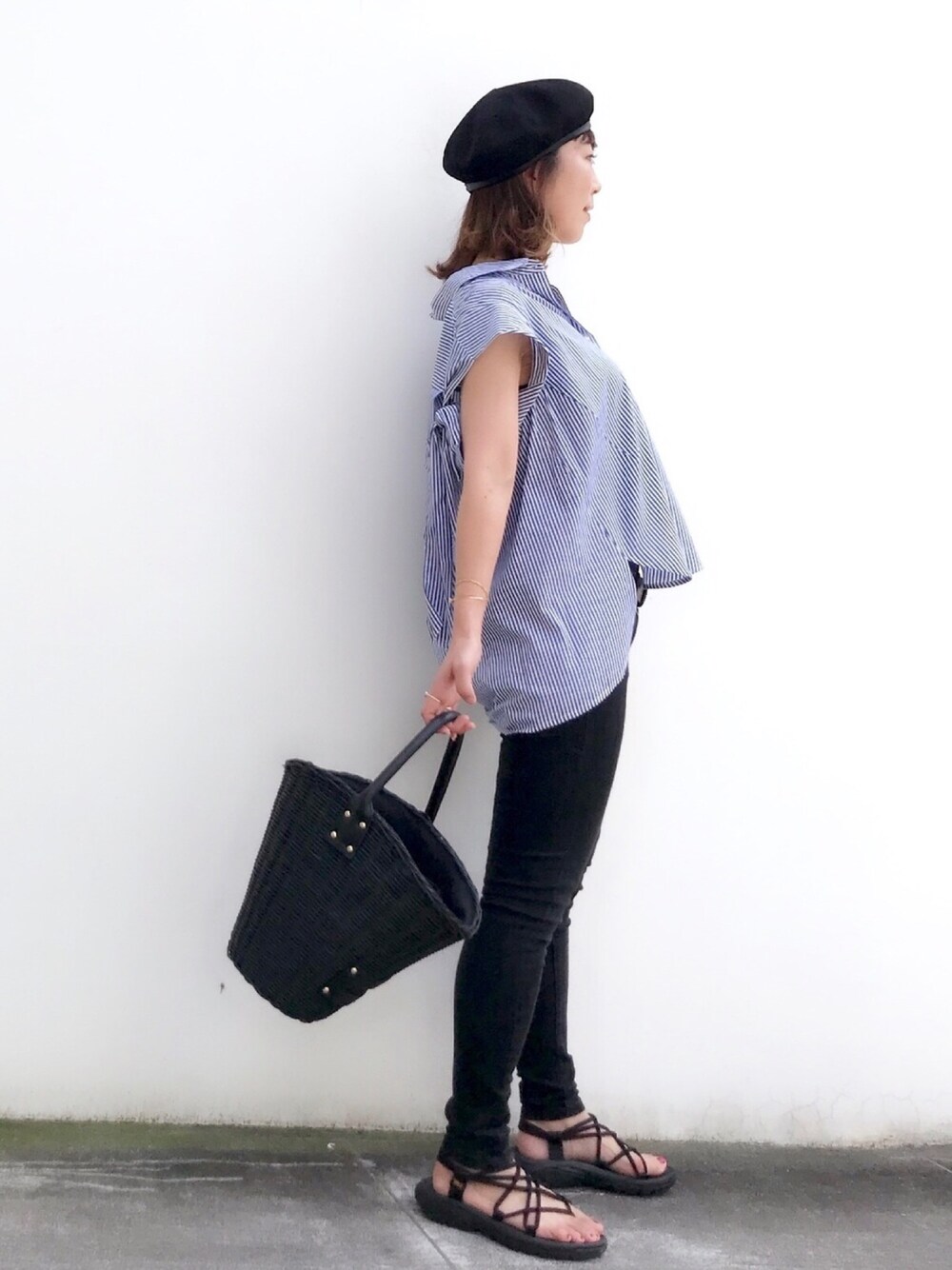 おはようございます✨ リボンがアクセントのストライプシャツに 黒スキニー ジュエリーは、オープンスターネックレスに シンプルな3本爪の一粒ダイヤモンドネックレスをアジャスターを使って37センチにして重ね付けしました✨ 見て頂きありがとうございます✨