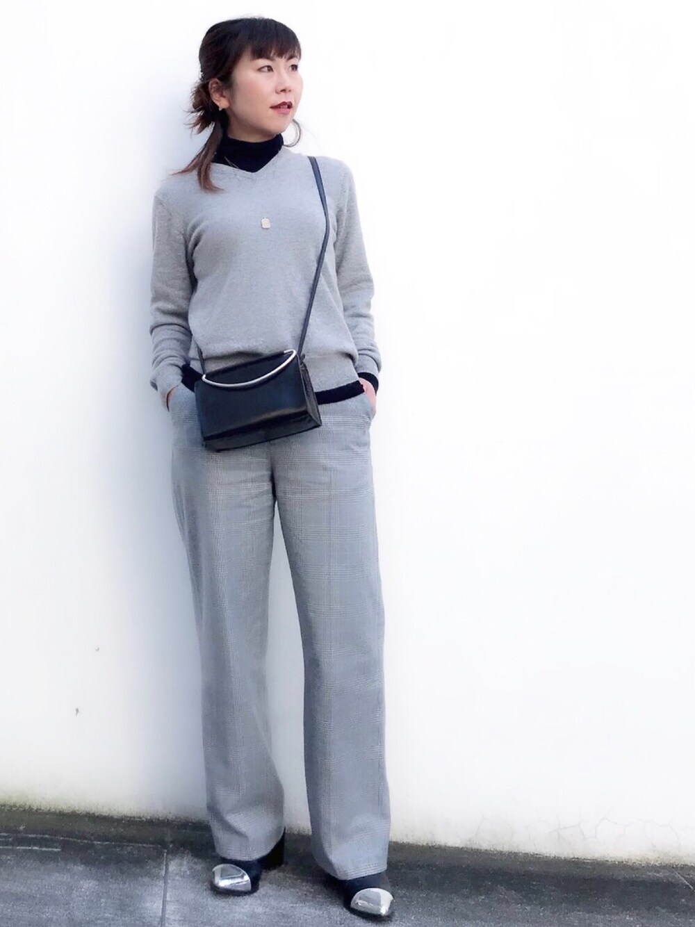 おはようございます✨ グレーのチェックパンツにカシミヤニット 中はリブタートルでオジ風に ジュエリーは、フルエタニティダイヤモンドリングに シンプル華奢リングを重ね付けしました 見て頂きありがとうございます✨