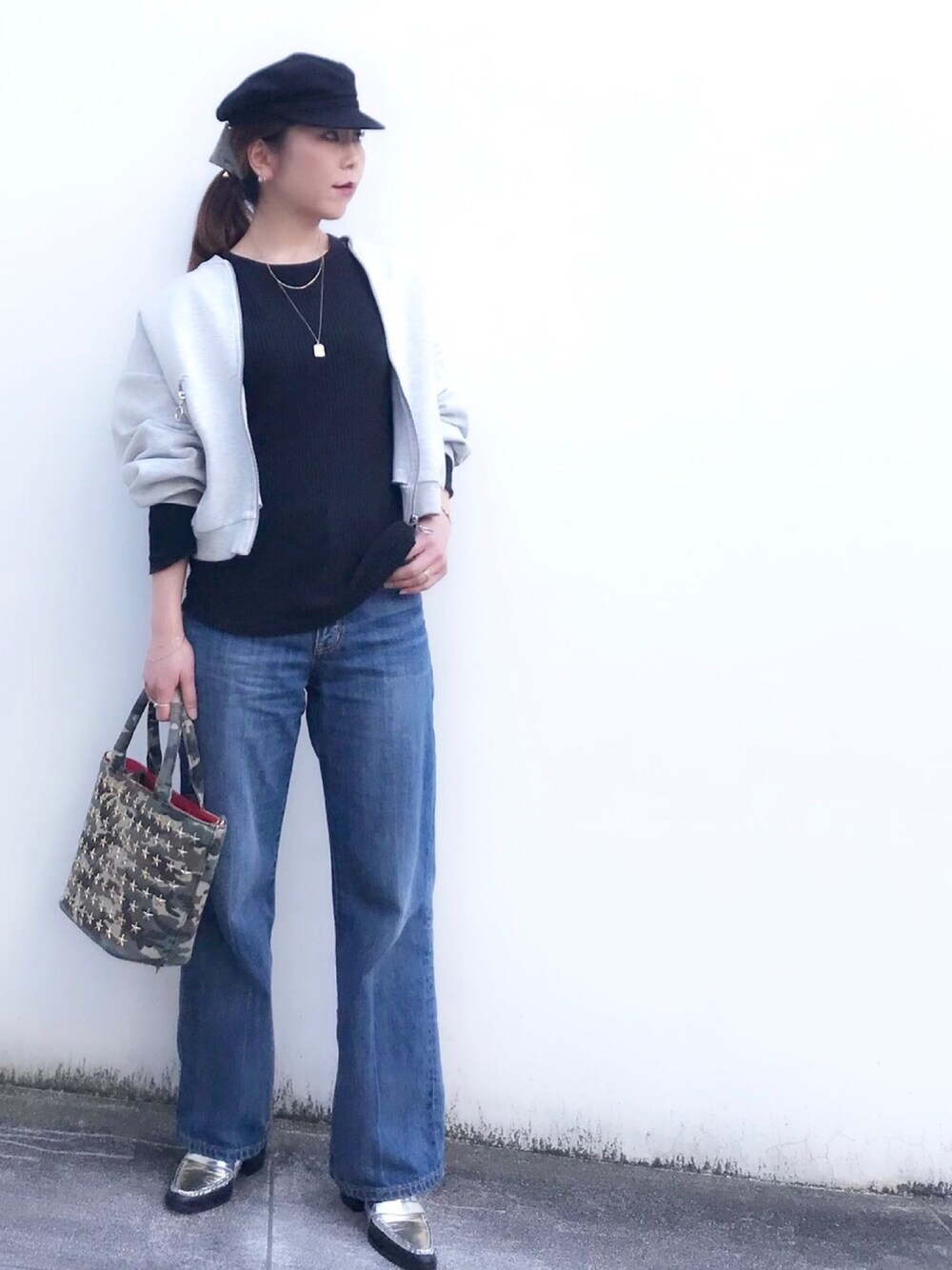 acoのブルゾン「プラッシュボンバージャケット」を使ったコーディネート