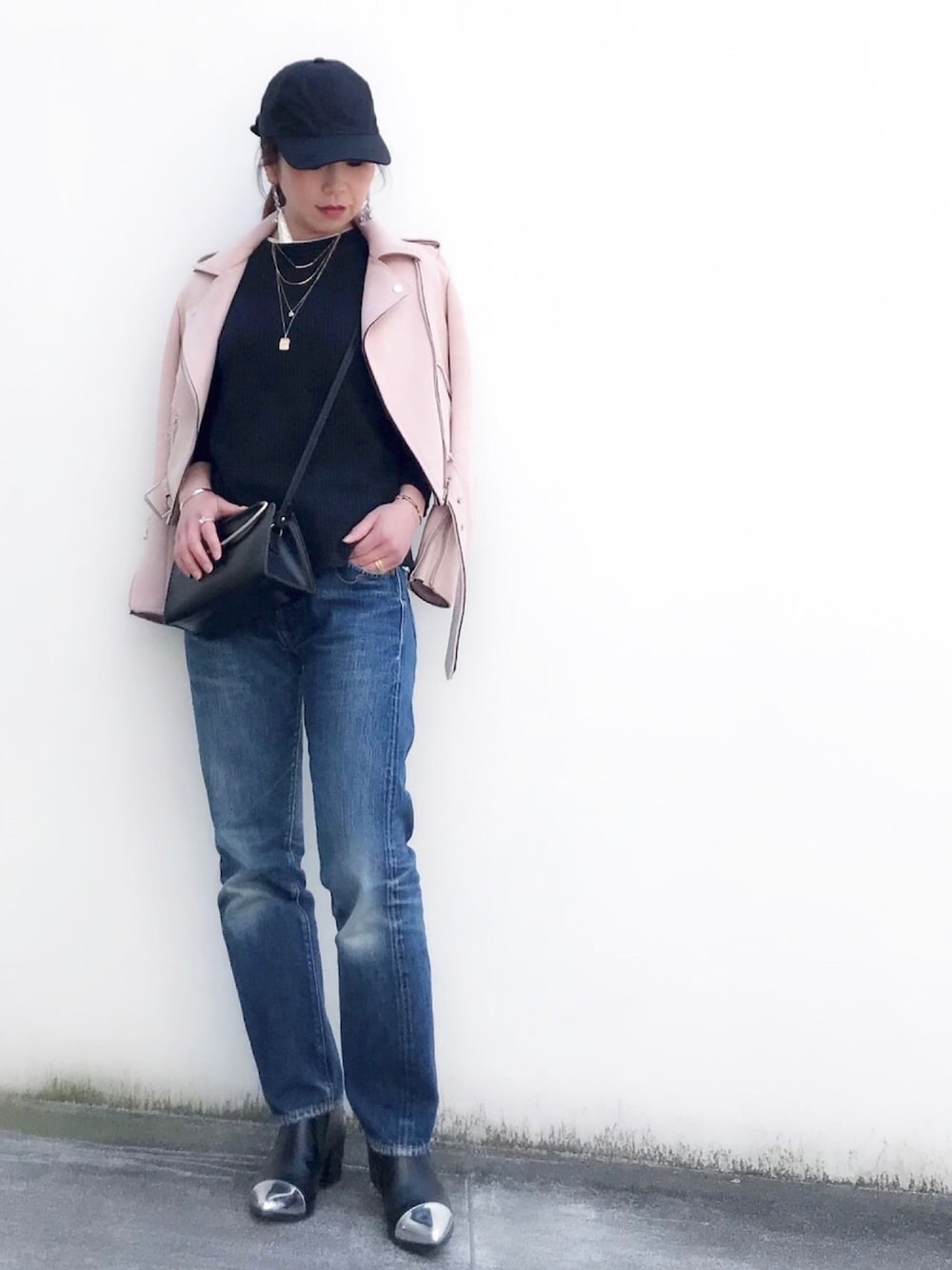 おはようございます✨ 桜がちょうど見頃ですね 着まわし多いですが、今月もよろしくお願いします 20年以上履いてるデニム 丈とか色落ち具合も含めてお気に入りです シンプルにワッフルTと 春らしくピンクのライダース ジュエリーは、シルバーのキュービックジルコニアリングと カチューシャみたいな形のシルバーバングルを合わせました 見て頂きありがとうございます✨