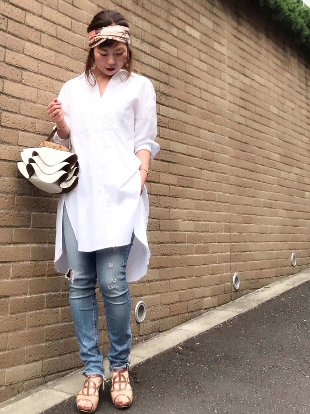 おはようございます✨ ロングシャツにデニム スカーフ巻きましたが、ハットの方が良かったかな… ジュエリーは、ネックレス2本を重ね付け 見て頂きありがとうございます✨