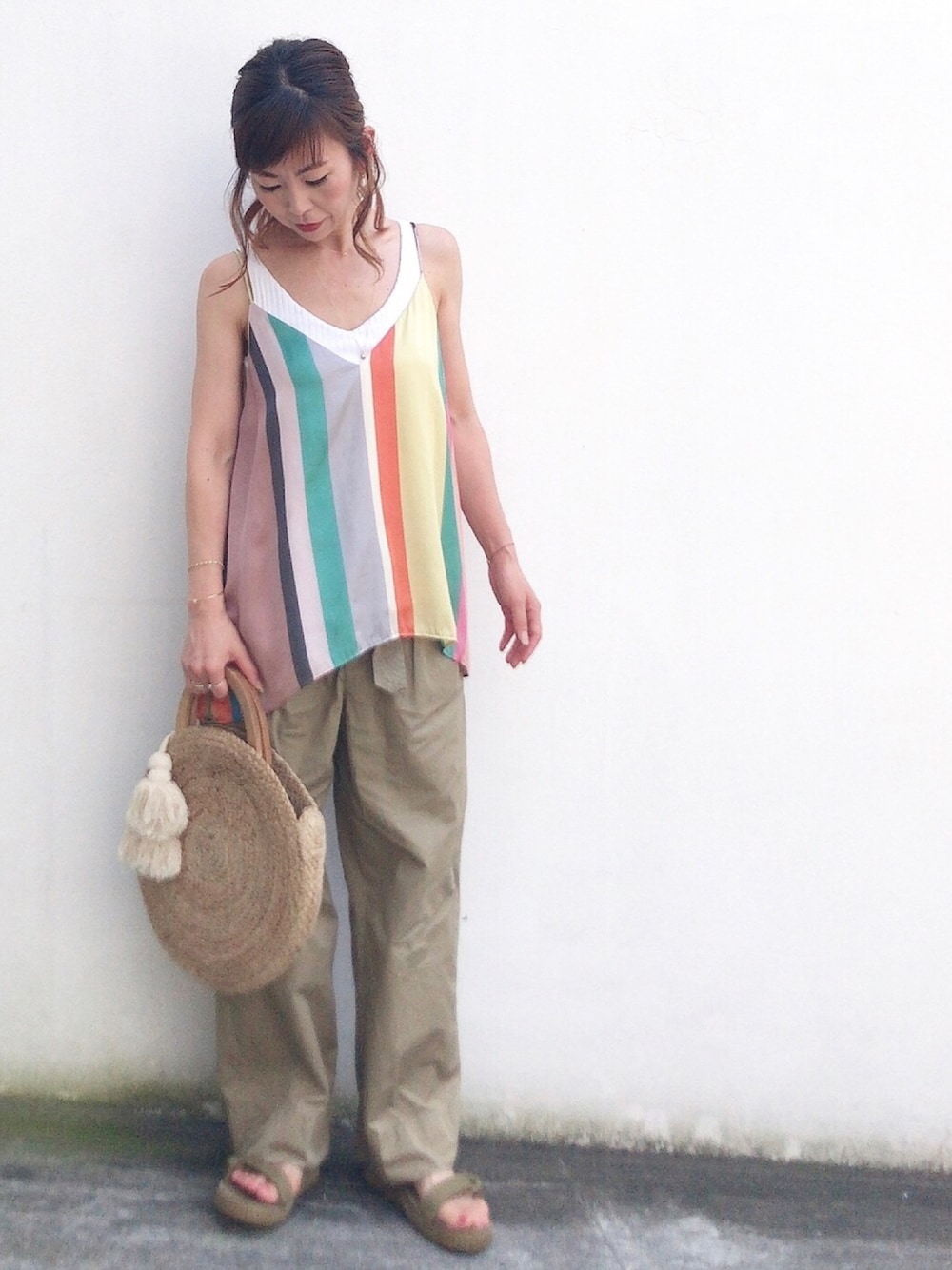 acoのキャミソール「マルチカラーストライプ柄ブラウス S」を使ったコーディネート