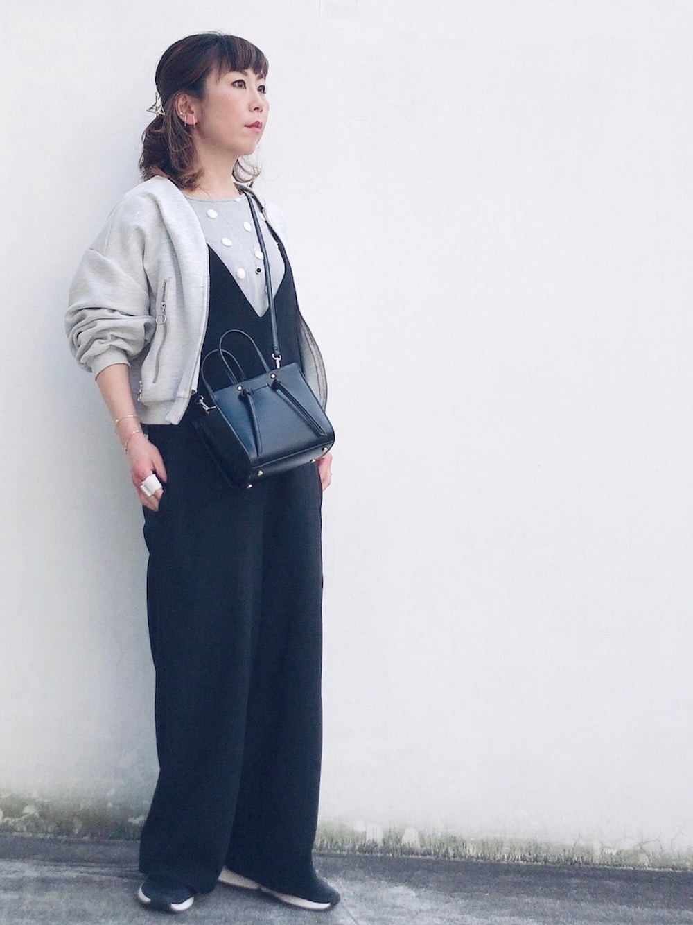 着用コーデ:28件おはようございます グレー×ブラックのモノトーン 見ていただきありがとうございます