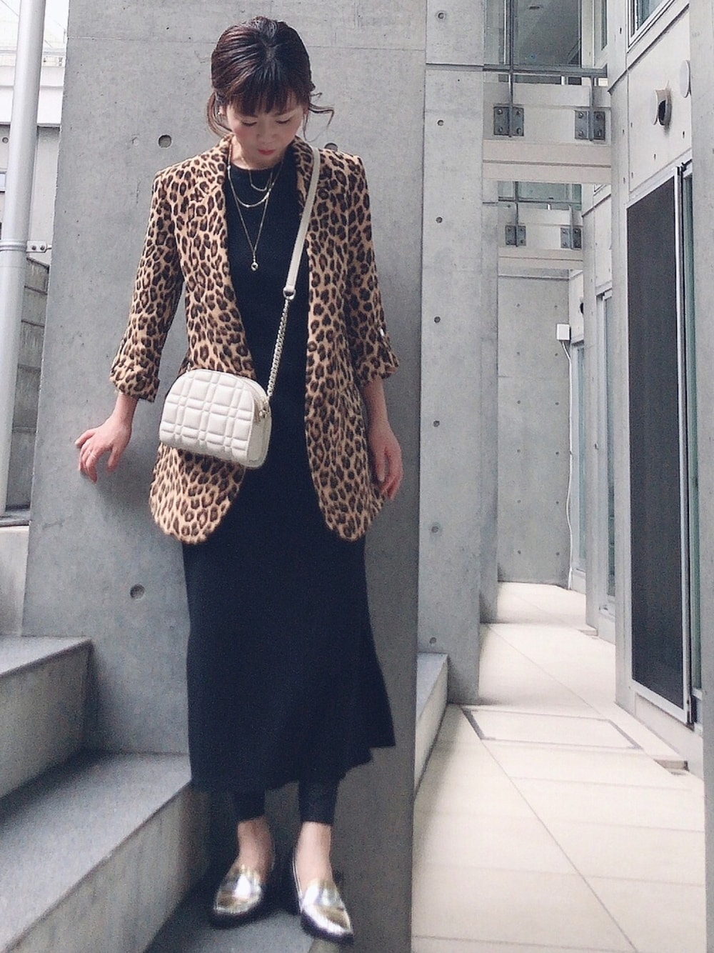 おはようございます レオパード柄ジャケット 中はワンピとレギンス 見ていただきありがとうございます