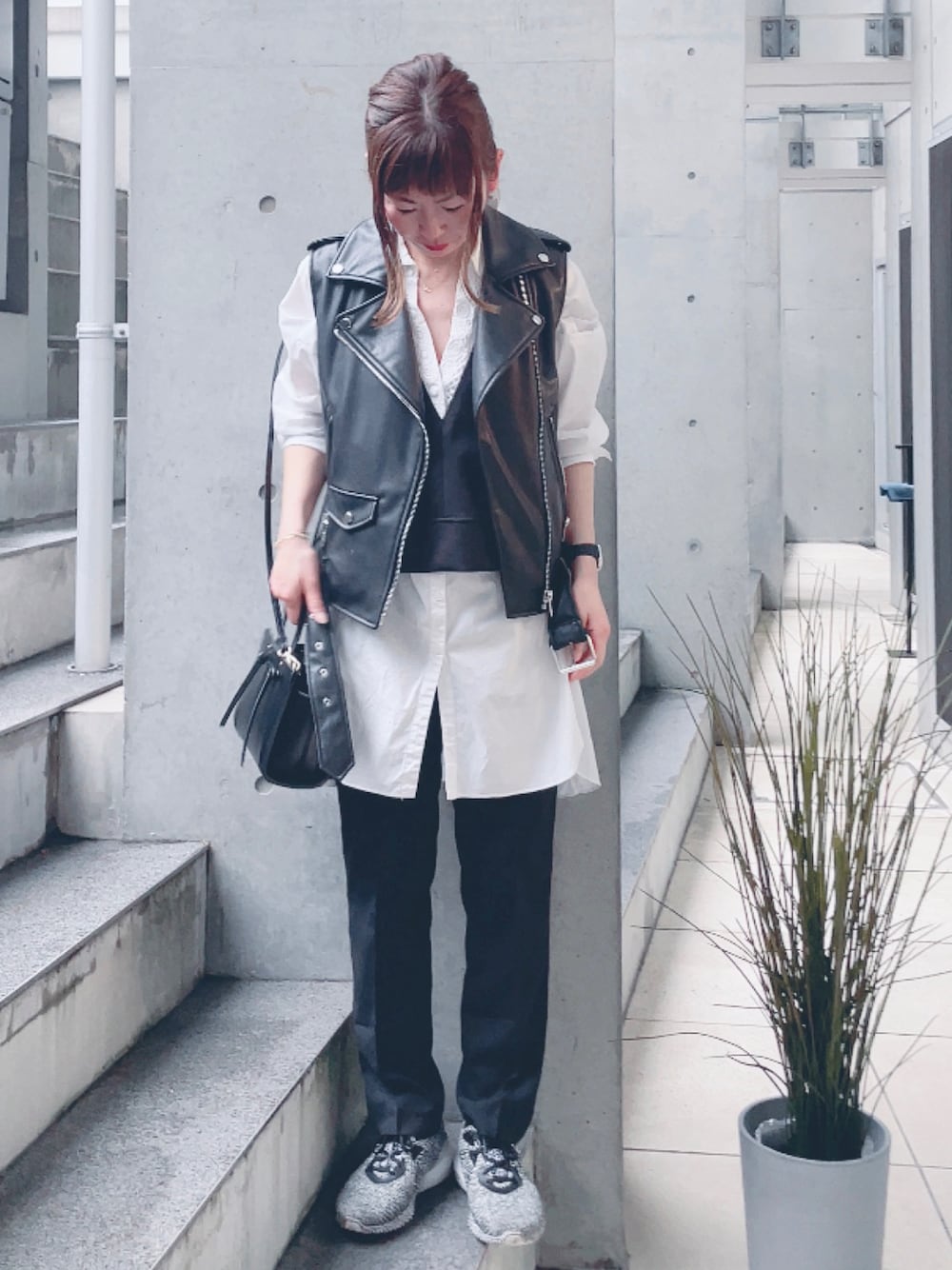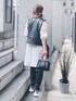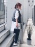 おはようございます ライダースベストで着回しモノトーン 見て頂きありがとうございます