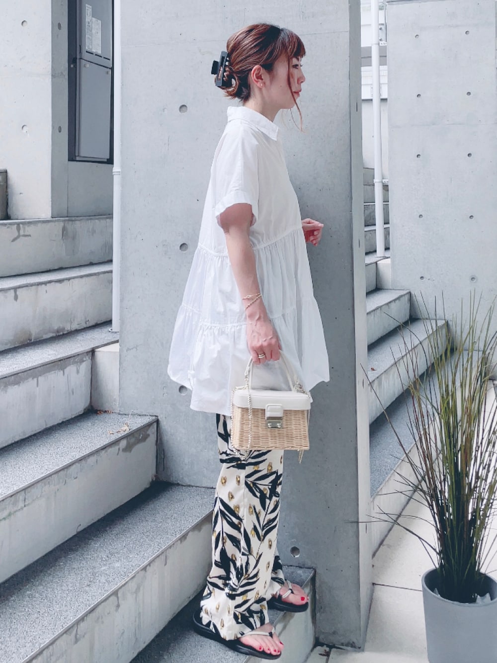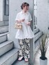 おはようございます ボタニカル柄パンツで着回し 見て頂きありがとうございます