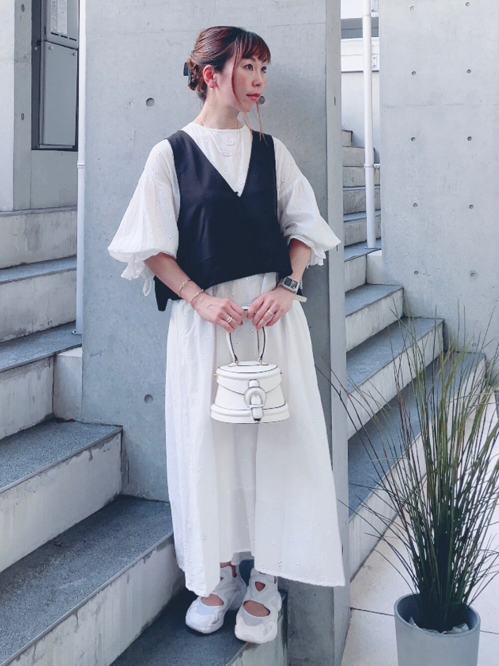 おはようございます ワンピースとベストで、白多めのモノトーン 見て頂きありがとうございます