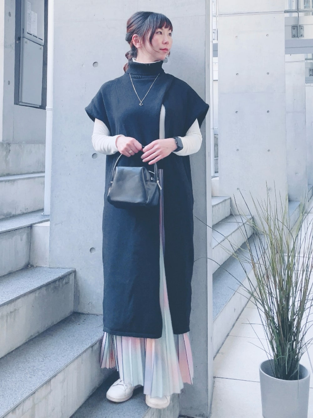 acoのニット/セーター「ハイネックラップニットロングトップス」を使ったコーディネート