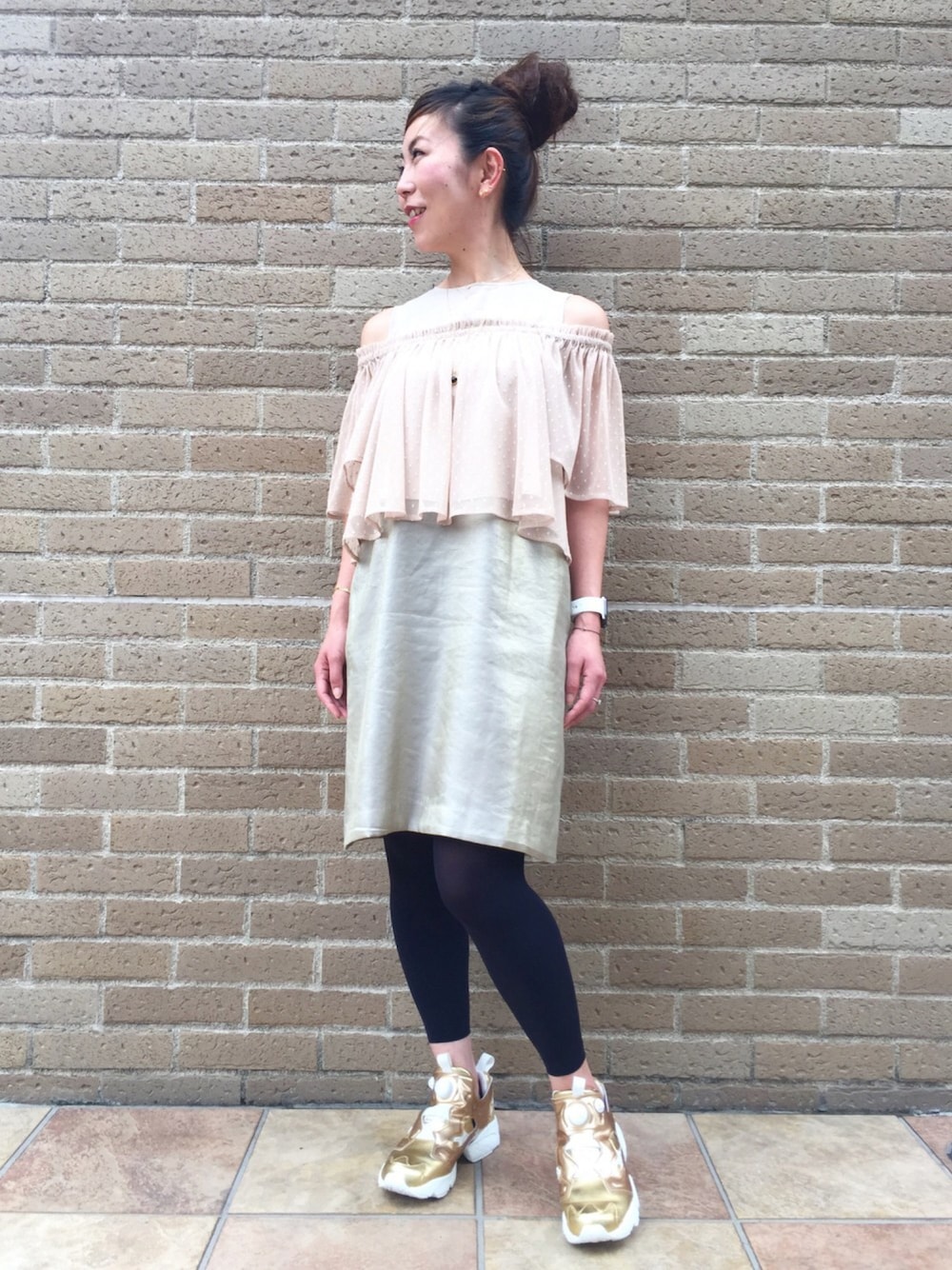 オフショル~☆ ゴールドのサテン系のワンピースに ドットレースがセットアップになったもの。 バラバラでも着られるので組み合わせも楽しそう。 とりあえず今日はセットアップで着てみました。 ワンピでもパンツやスカートでも ポケットが付いていると嬉しいのは私だけ?? そこを重視して購入はしませんが、付いていると得した気分になります^^ オフショル、やっぱりバイーンってなりますね。。。 ゴールドつながりで金ポンプ。 ジュエリーはネックレスの重ね付けです。 ミル打ち 一粒ダイヤモンド ネックレス(ピナコテーカ)と ミル打ち クロス ネックレス(ピナコテーカ)です。 ジュエリーのアップは小窓でご覧ください~♪