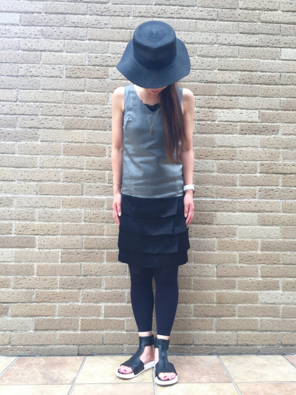モノトーンコーデ☆ グレー×ブラックのワンピースです。 スカート部分がプリーツになっているところが シンプルなのに好き♪ インナーに黒レースキャミ。 レギンス無しの方が良いのでしょうが、足見せ苦手です^^; ナイキのベナッシ~お気に入りの一足。 ジュエリーはネックレスの重ね付けです。 8本爪の一粒ダイヤモンド(ピナコテーカ)と 左右非対称にダイヤモンドが輝く クロスネックレス(レデッサンドゥデュー) ジュエリーのアップは小窓でご覧ください~♪