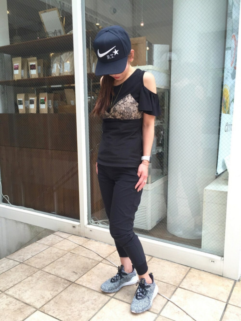 キャップのブラックコーデです^^ お気に入り過ぎてまた被ってしまいました♪ オフショルカットソーにキャミをレイヤード ジョガーパンツはドライストレッチです。 着まわしシンプルコーデ♪ スニーカーはヒョウ柄のアルファバウンス。 面白い写真が撮れないかな~と色々やってみたら トゥームレイダー風の写真になりました^^; 小窓にあります。 ジュエリーは、ネックレスの重ね付けです♪ プックリとしたデザインのハート ダイヤモンド ネックレス(レデッサンドゥデュー)と 4本爪の一粒ダイヤモンド ネックレス(ピナコテーカ) ジュエリーのアップは小窓でご覧ください~♪ 今日もご覧頂きありがとうございます☆