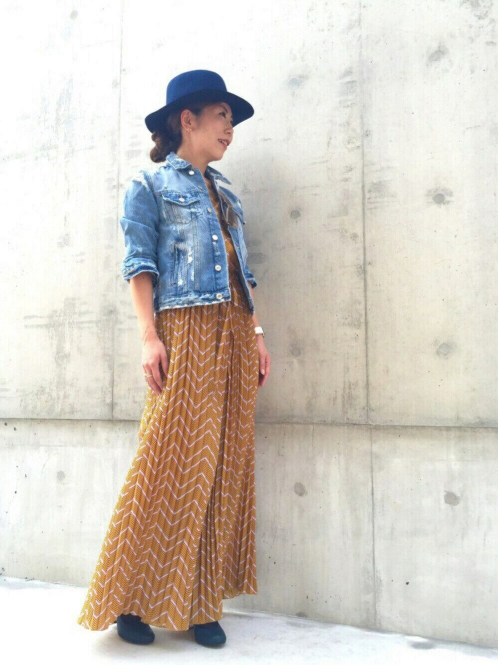 またまたデニムジャケット プリーツのギザギザボーダーオールインワン✨ 重ね着といっても、上に羽織るくらいしか思いつかないので ダメージデニムジャケット😎 夏に一枚よりも、羽織り物でこれからもっと楽しめるかな😊 ハットはブルーに見えますが 濃紺の綺麗な色です💙 ジュエリーはブレスレットの重ね付け✨ 小ぶりなバテイ ホースシュー ブレスレット(ピナコテーカ)と マット仕上げで大人っぽい シンプル 一粒ダイヤモンドネックレス(ピナコテーカ) ジュエリーのアップは小窓でご覧下さい〜✨ 今日もご覧頂きありがとうございます✨ いいね、セーブ、コメント、フォローまでとっても嬉しいです💕 初めましての方もよろしくお願いします❤️