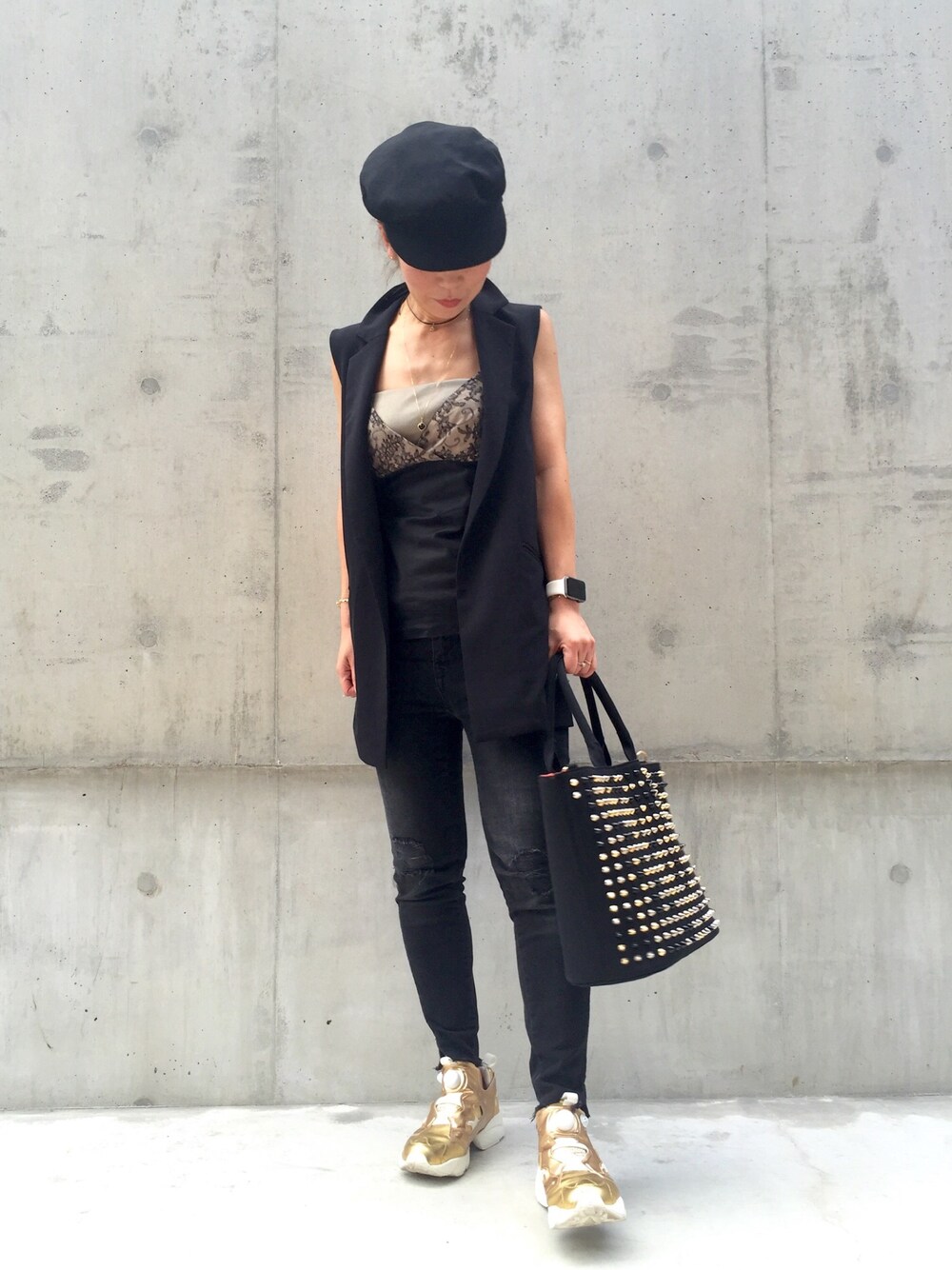 ジレ まだ日中暑い日の少し前のコーデです💡 ちょっと銀座までウインドウショッピング お目当てはDSM 実は初めて行きました😅 評判通りに、ディスプレイを始め、取り扱う品々も見応えたっぷり😎⭐️ 好みの品はありましたが、何もお持ち帰りはしない日になりました 素敵なお店って、見ているだけでワクワクしますね✨ そんなドーバーストリートマーケットの日のコーデ モノトーンにゴールドのポンプフューリー ダメージデニムにレースのキャミを着て、ジレ 私なりのお出かけ感です😆✨ ジュエリーはチョーカーとピアスを✨ 王冠モチーフのチャーム(ピナコテーカ)をナイロンサテンコードに通してチョーカーに ゴールドビッツの小さいSさいずのスタッドアメリカンピアス(レデッサンドゥデュー)と ミル打ちのシンプルクロスピアス(ピナコテーカ) ジュエリーのアップは小窓でご覧ください✨ 今日もご覧頂きありがとうございます✨ いいね、セーブ、コメント、フォローまでとっても嬉しいです💕 初めましての方もよろしくお願いします❤️
