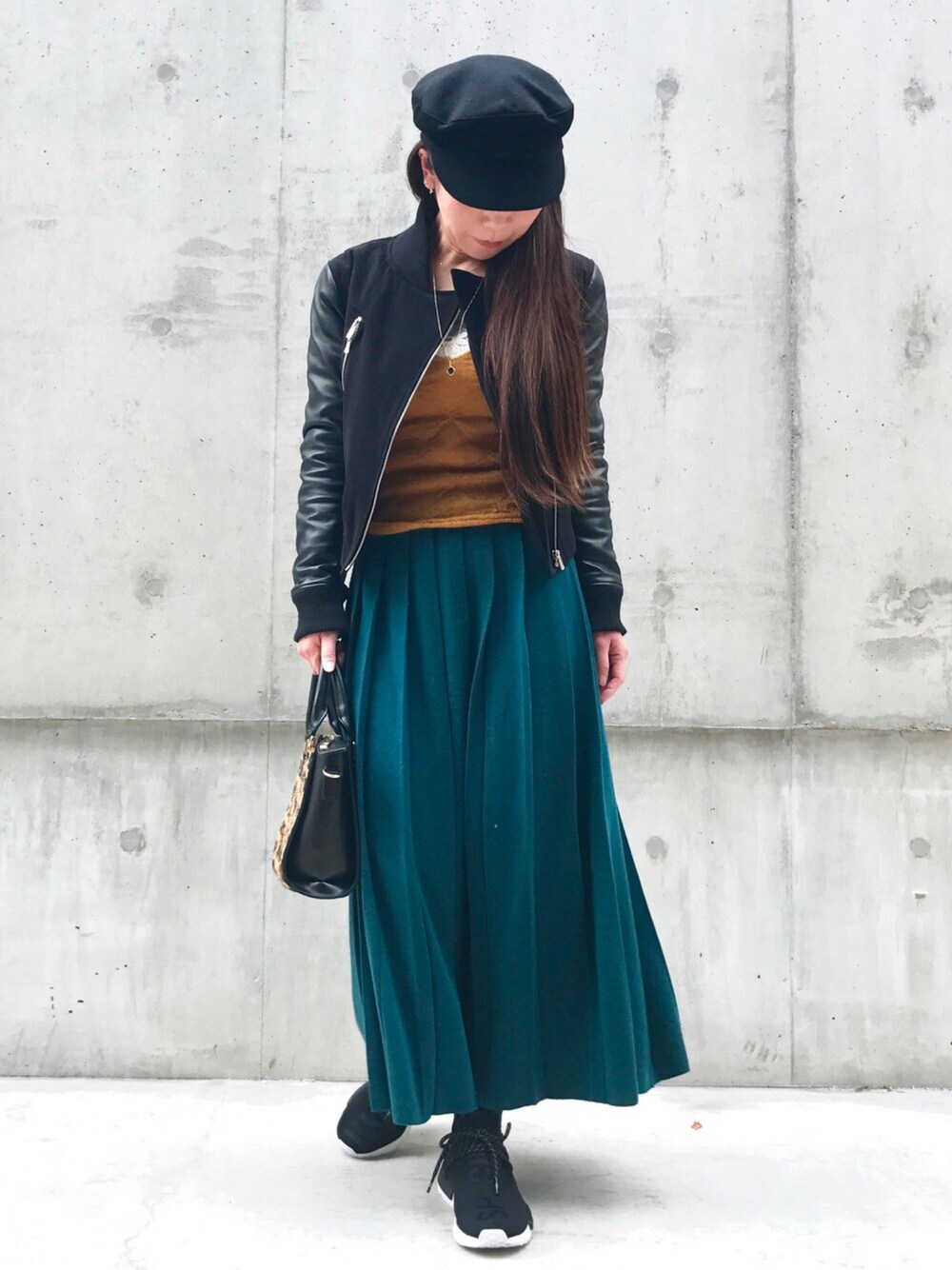 acoのスカート「ユニクロ エクストラ ファインメリノ プリーツスカート グリーン S」を使ったコーディネート