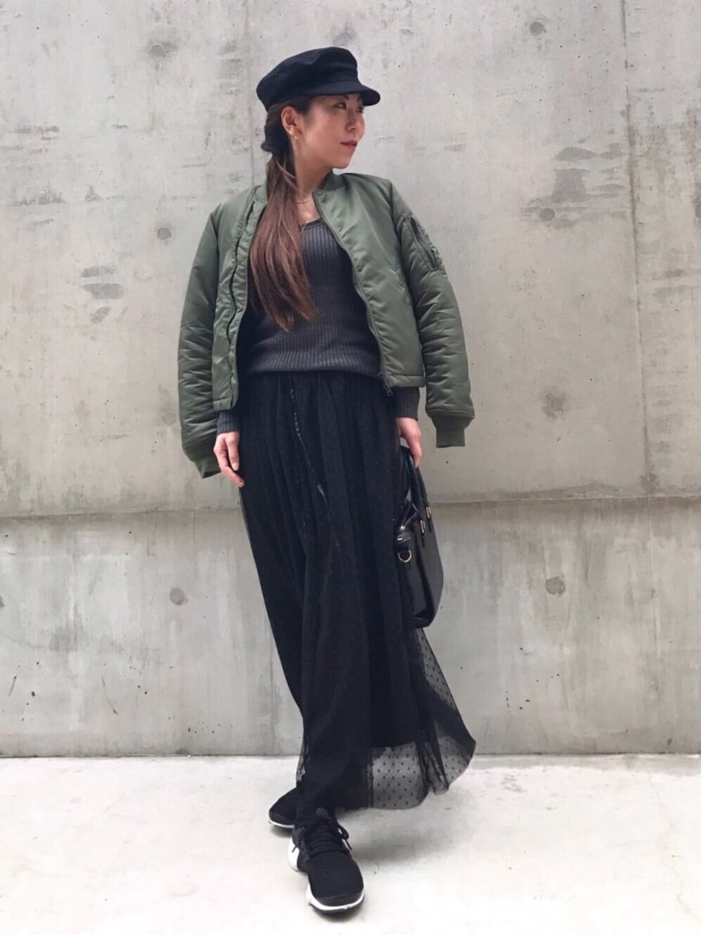 おはようございます ご覧頂きありがとうございます✨ MA-1にスカート合わせ チュールスカートにしてみました 地味めな感じですが、落ちついた雰囲気という事で(笑) 風が強くてスカートがヒラリ ジュエリーはリングを✨ ねじり柄の 華奢リング(ピナコテーカ)と トライアングル リング(レデッサンドゥデュー)を重ねつけ ジュエリーのアップは小窓でご覧ください✨ いいね、セーブ、コメント、フォローまでとっても嬉しいです💕 初めましての方もよろしくお願いします❤️