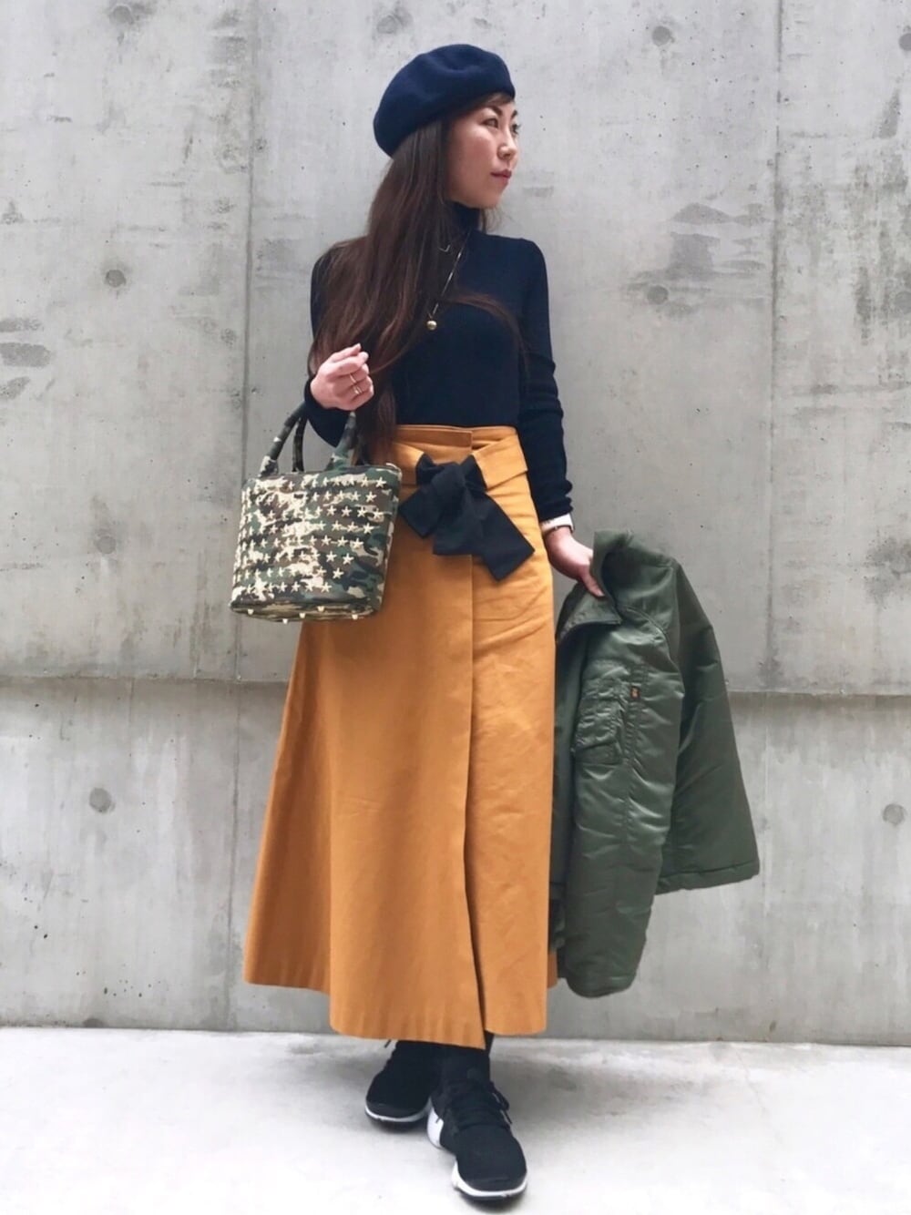 おはようございます ご覧頂きありがとうございます✨ 今年からWEARを始めて沢山の方々と交流出来てとても楽しい1年になりました(*´꒳`*) 素敵なコーデだなと、話しかけられずにいる私ですが見にきていただいて喜んでいます😆 来年もマイペースでアップしていきますので、よろしくお願いします⭐ 良いお年を〜 今年最後のコーデは、マスタード色のロングスカートのシンプルコーデ MA-1を羽織ってきたので手持ちしてます ジュエリーはネックレスを✨ V字の ダイヤモンド ネックレス (ピナコテーカ)と フルムーン イニシャル チャームを65センチネックレスに通して(ピナコテーカ)の重ね付けです ジュエリーのアップは小窓でご覧ください✨ いいね、セーブ、コメント、フォローまでとっても嬉しいです💕 初めましての方もよろしくお願いします❤️