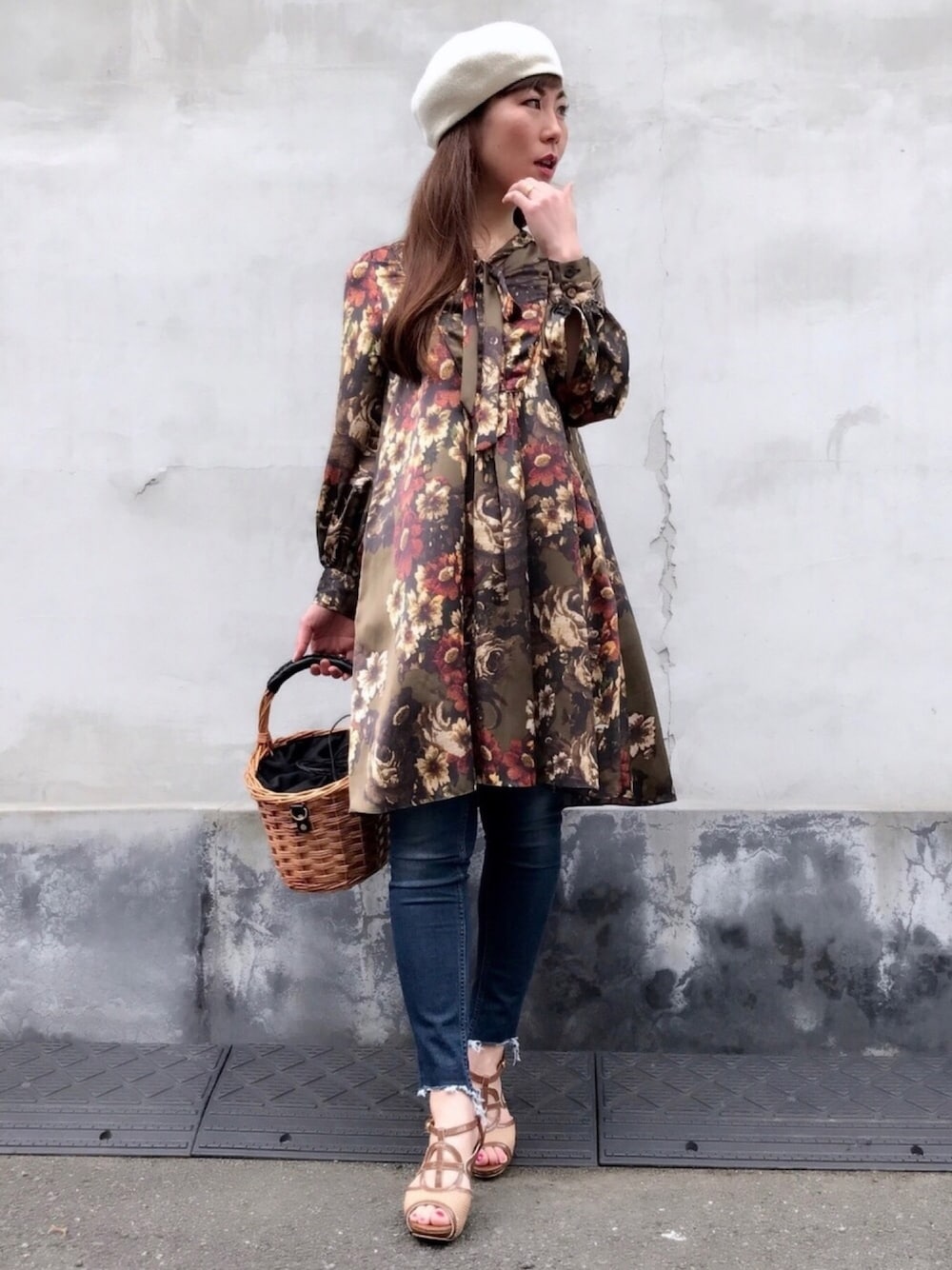 おはようございます ご覧頂きありがとうございます✨ 花柄ワンピースにデニム+ベレー帽でシンプル デニムは裾自分で切りました👖 もう少し切ってもいいかな〜 案外寒かったので朝晩はこの上からカーキトレンチ着てました。 顎の手は、風が吹いて髪の毛を取ろうとしてる所です ジュエリーは、ラウンドモチーフのアメリカンピアスとダイヤモンドピアスを合わせました✨ 公開フォルダに載せて下さった方々ありがとうございます❤️ いいね、お気に入り、コメント、フォローまでとっても嬉しいです✨ 初めましての方もよろしくお願いします✨