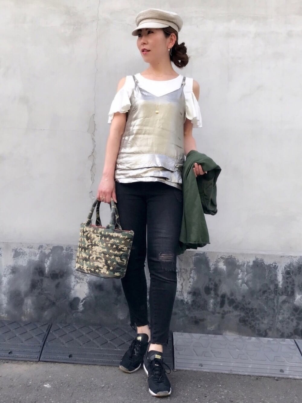 おはようございます ご覧頂きありがとうございます✨ シャンパンゴールドのキャミソールをGUのオープンショルダーTに重ねたシンプル このブラックデニムも自分でカットオフ(笑) アディダスカントリーは、細身で縦長スッキリシルエットが好みです ミリタリーシャツ羽織ろうと持ってきたのに、あまりの暑さに手持ち まだ5月なのにすでに夏ですね💦 ジュエリーは、イニシャルのフルムーンチャームを75センチチェーンに通して、星のキラメキみたいなブレスレットと合わせました✨ フォルダに載せて頂きありがとうございます✨ いいね、お気に入り、コメント、フォローまでとっても嬉しいです✨ 初めましての方もよろしくお願いします✨
