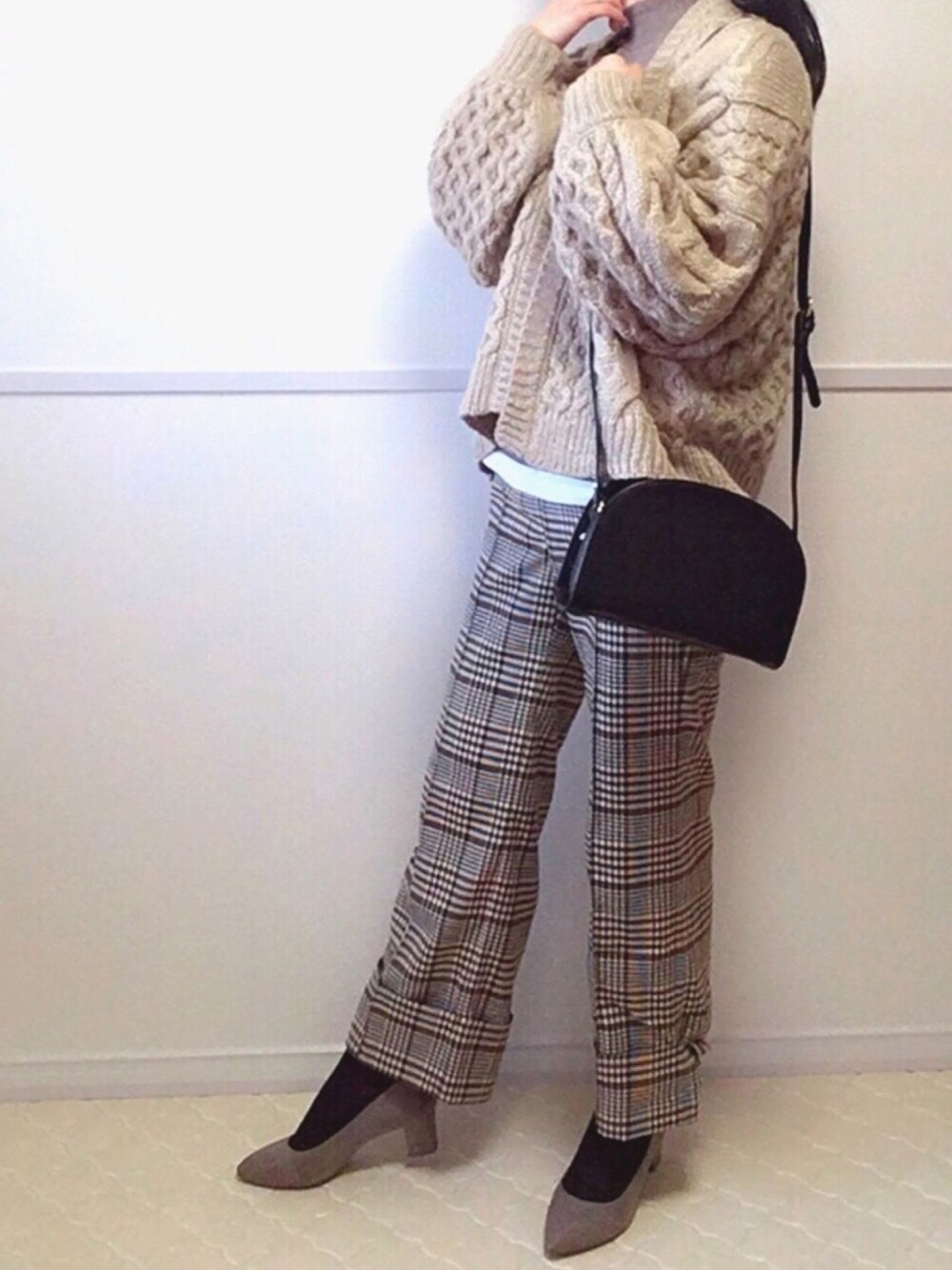 うぅ〜寒いですね😵❄️ 今日は暖かくするために レイヤードコーデになりました。 カーデの中にダウンベストを 着ています。 このチェックパンツは 理想の色と柄の大きさで お気に入りです✨ ☆point 1.黒髪のブラウンコーデ →小物に黒をいれるとまとまる。 →今回はバッグとソックス。 2.トップスのレイヤード →Tシャツの幅は5㎝がMYルール 3.柄物の合わせ方 →初心者は柄物1点が簡単。 →柄が大きいほどカジュアル。 →柄が細かいほどキレイめに。 ☆item ・ニットカーデ(カジュアル) → Msize ・ダウンベスト → Msize ・スウェット(カジュアル) → Msize ・Tシャツ(カジュアル) → men's Msize ・チェックパンツ(キレイめ) → Msize ・パンプス(キレイめ) ・ハーフムーンバック(キレイめ) 見てくださってありがとうございます! フォロー・いいね、 とてもうれしいです!