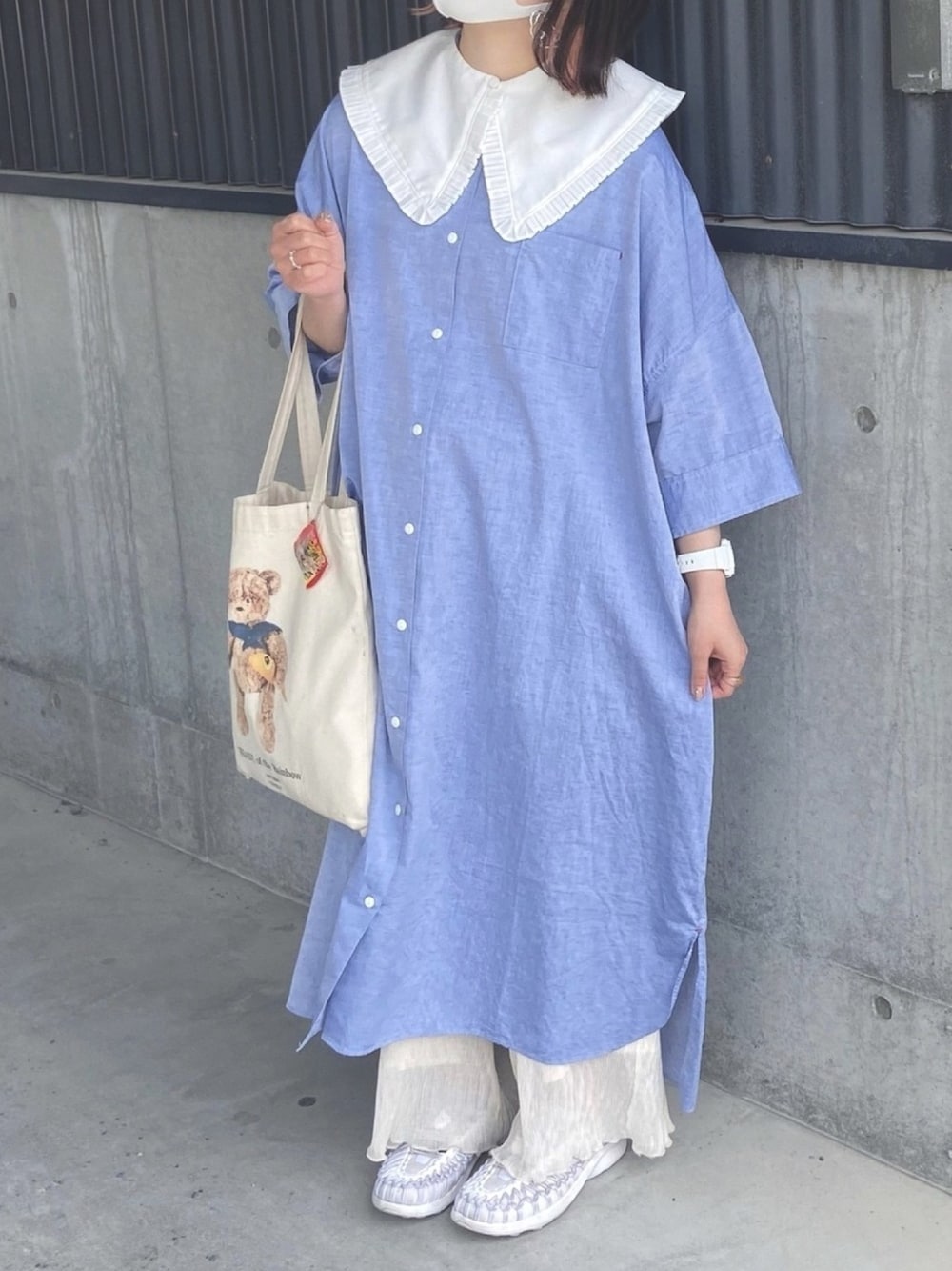 シャツワンピにエリついてるけどさらにその上から大きいつけ衿しても最高にかわいい👍🏻♡
