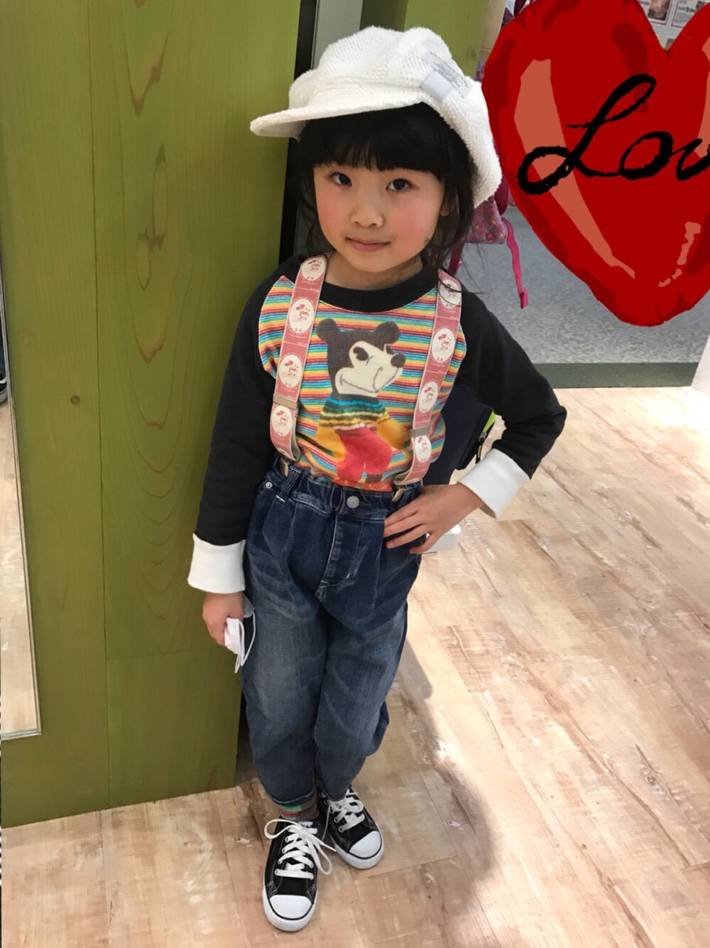 大好き❤ミッキー❤️ 古着mixコーデ風に(о´∀`о)昔のムチャチャめっちゃ使える✨JCのお姉のお古役立つ🌈🌈🌈🌈